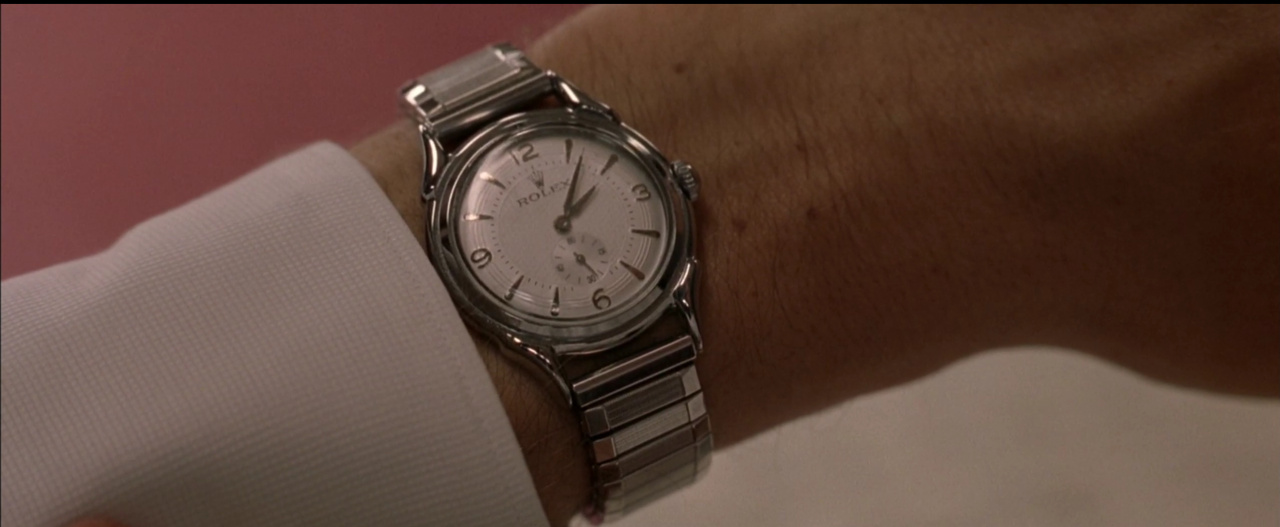 While it’s supposed to be an early automatic though, you can pretty clearly see it tick in the film, suspiciously like a quartz stand-in.