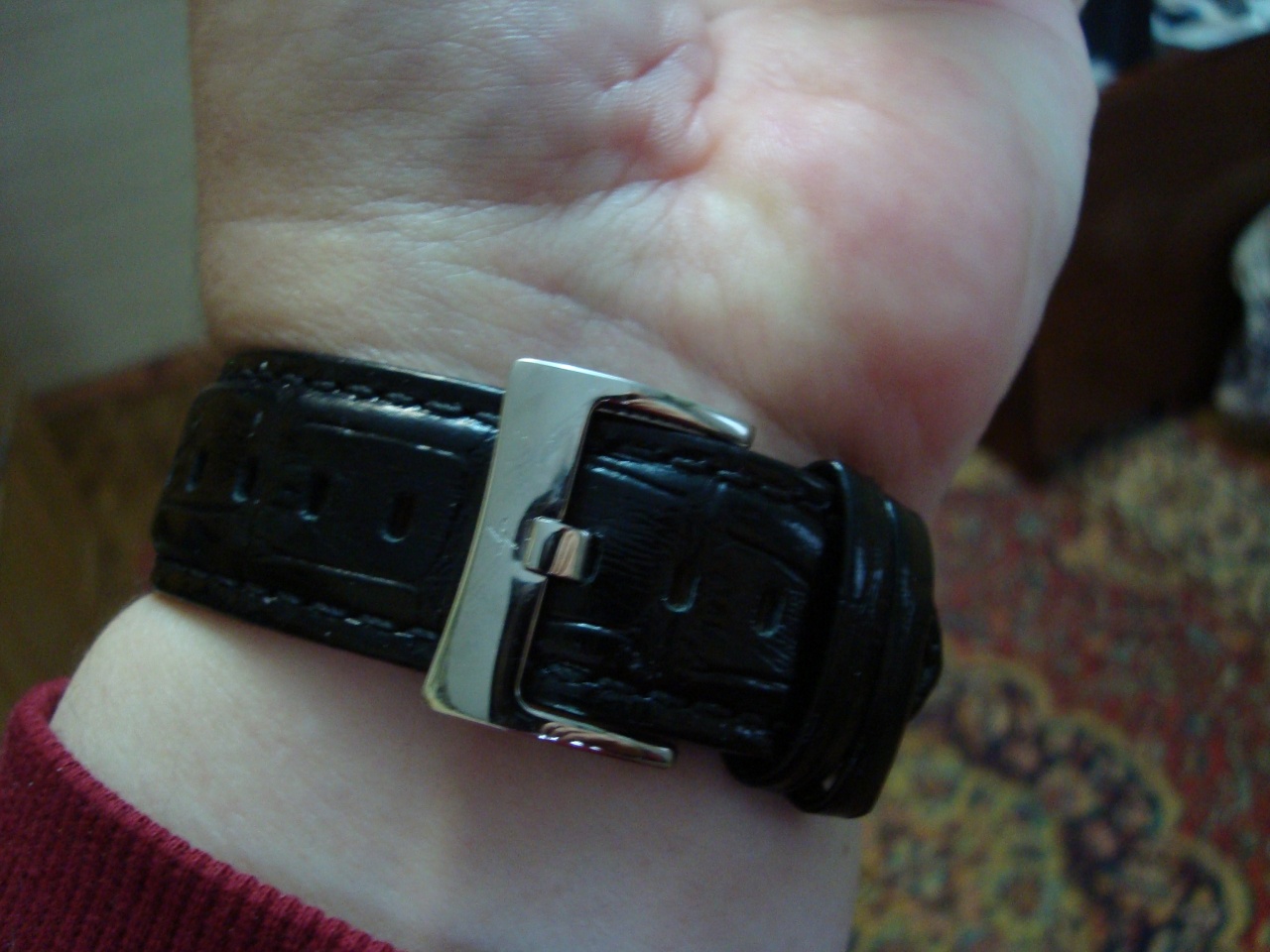 Касаясь, ремешка. Если кто-то решится заказать такие часы, то хочу сказать, что ремешок коротковатый. У меня запястье 19 см. Ремешок тык впритык. Если у кого-то запястье больше, то сразу просите, чтобы в магазине поменяли на более длинный.