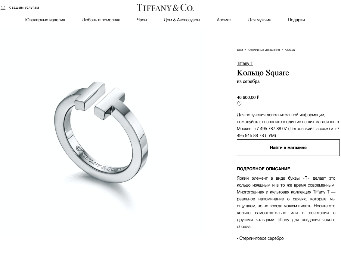 КОЛЬЦО TIFFANY SQARE из стерлингового серебра