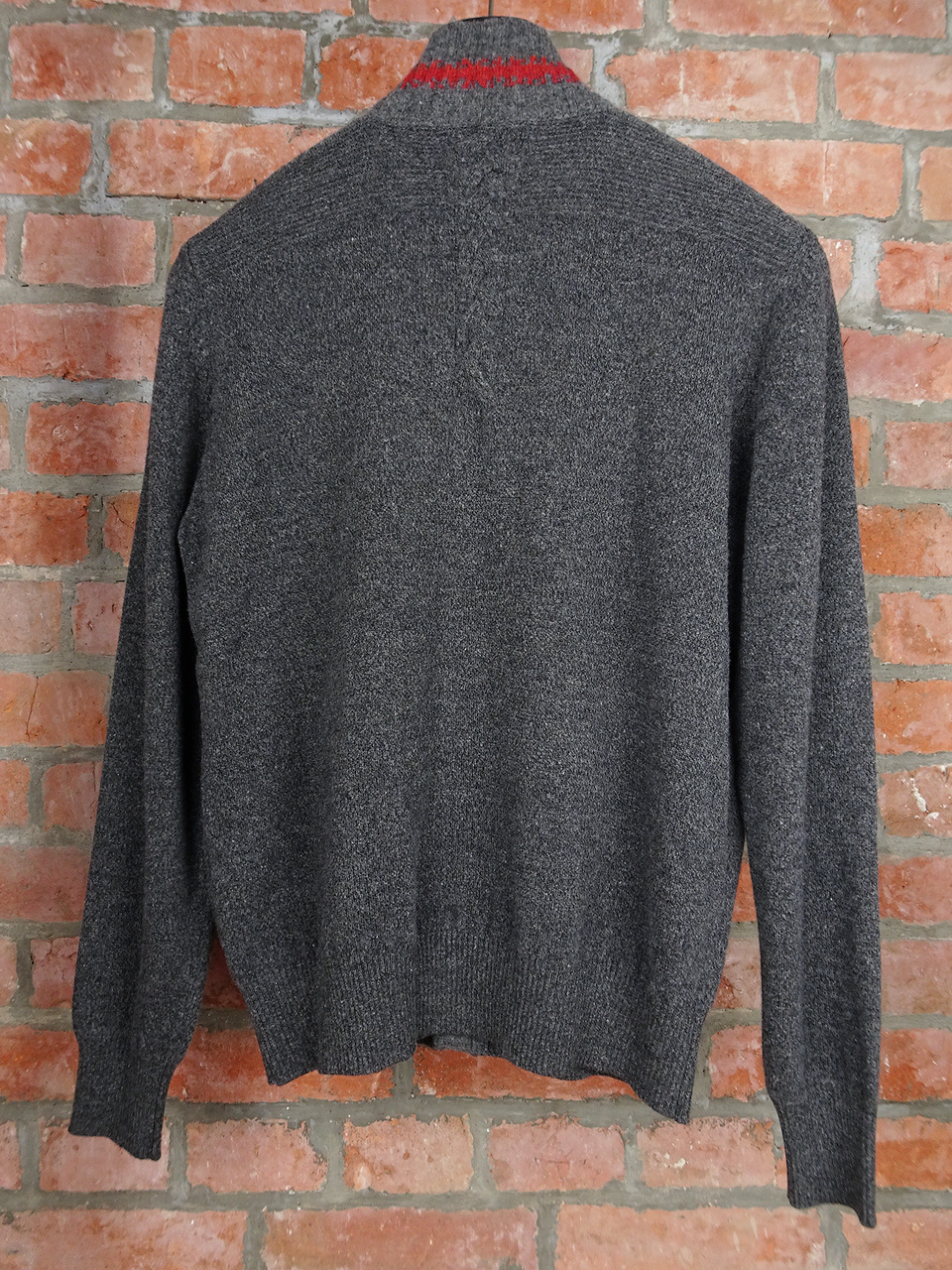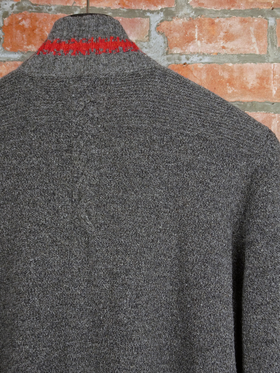 Цвет: серый меланж, на воротнике дополненный контрастным узором красно-рябинового цвета.
