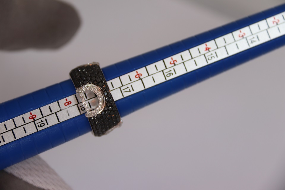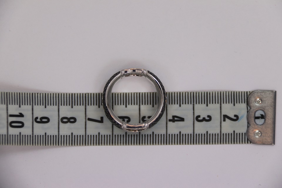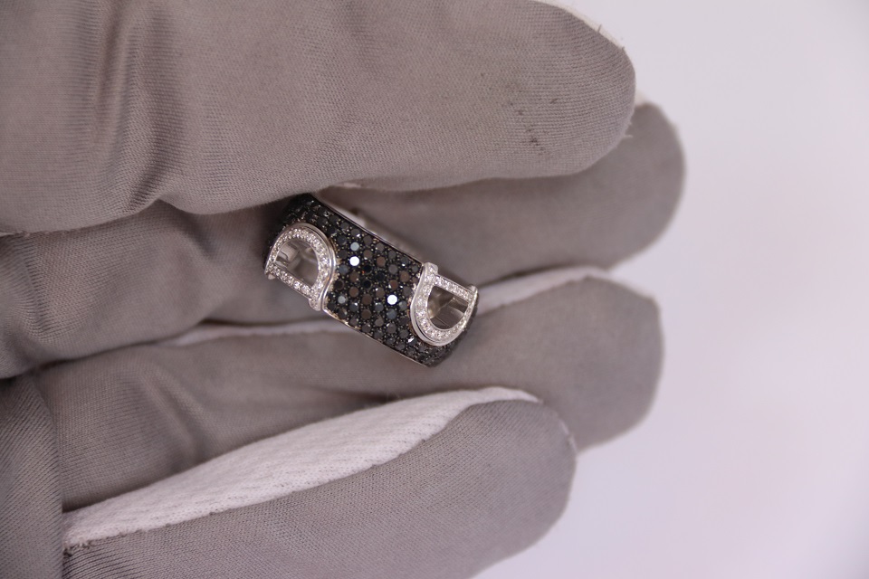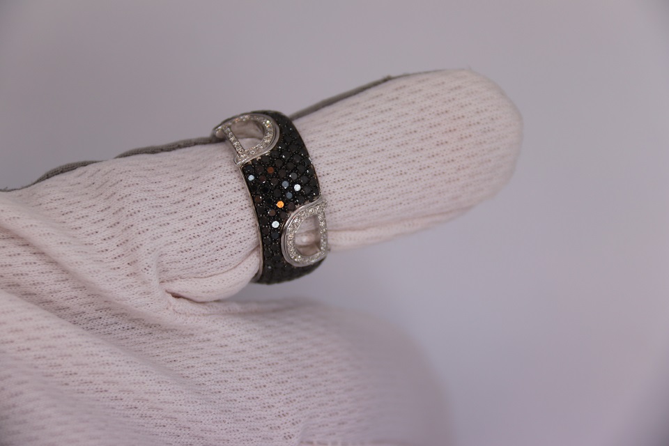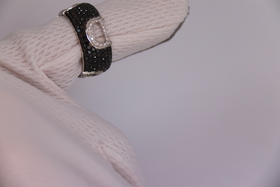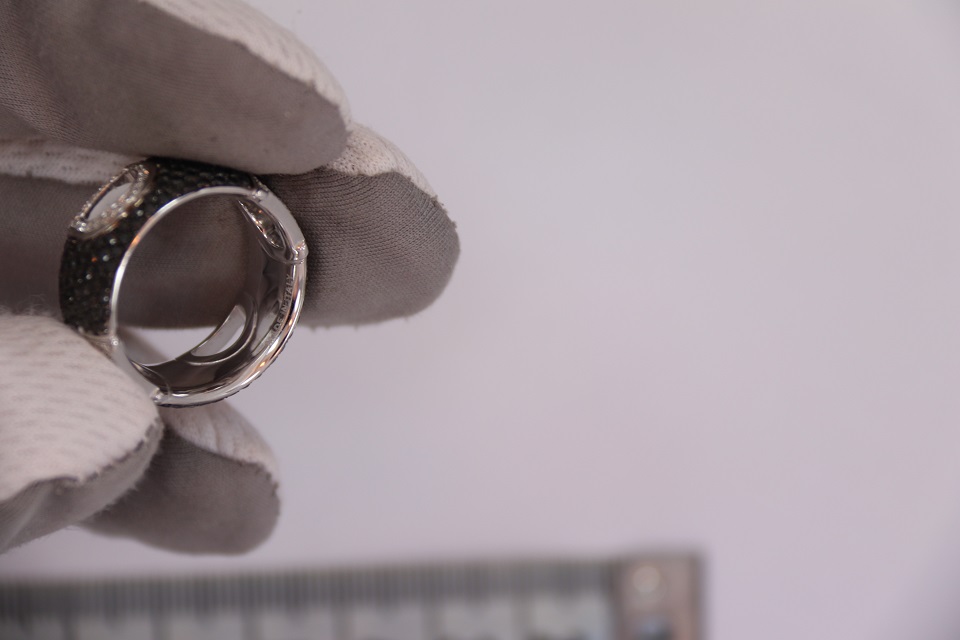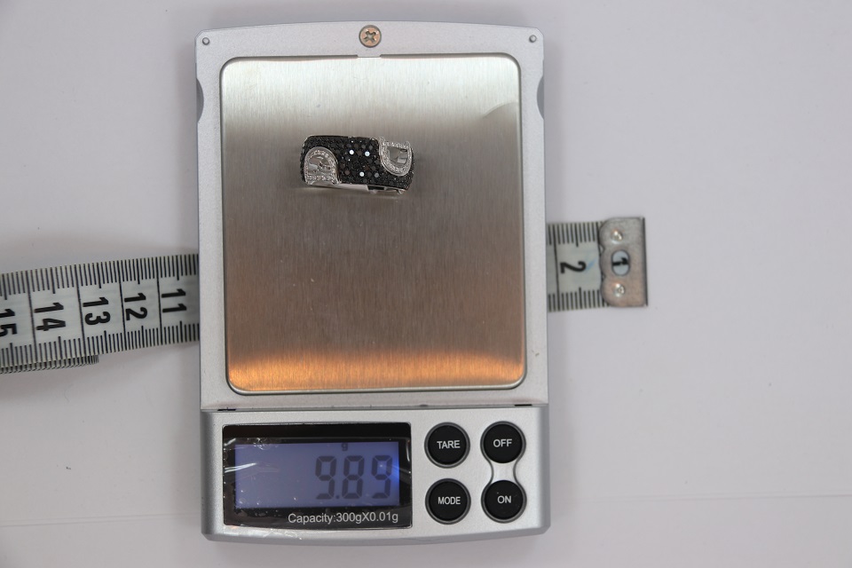 Неспешно продается новое золотое женское кольцо из белого золота с белыми и черными бриллиантами