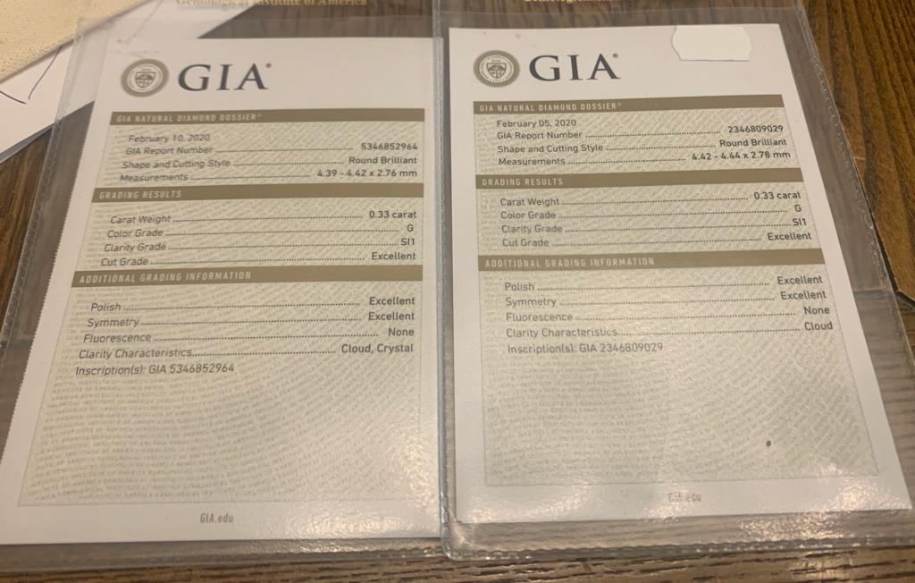 Характеристики бриллиантов - G/SI1, excellent - excellent - excellent. Шикарные диаметры камней.
