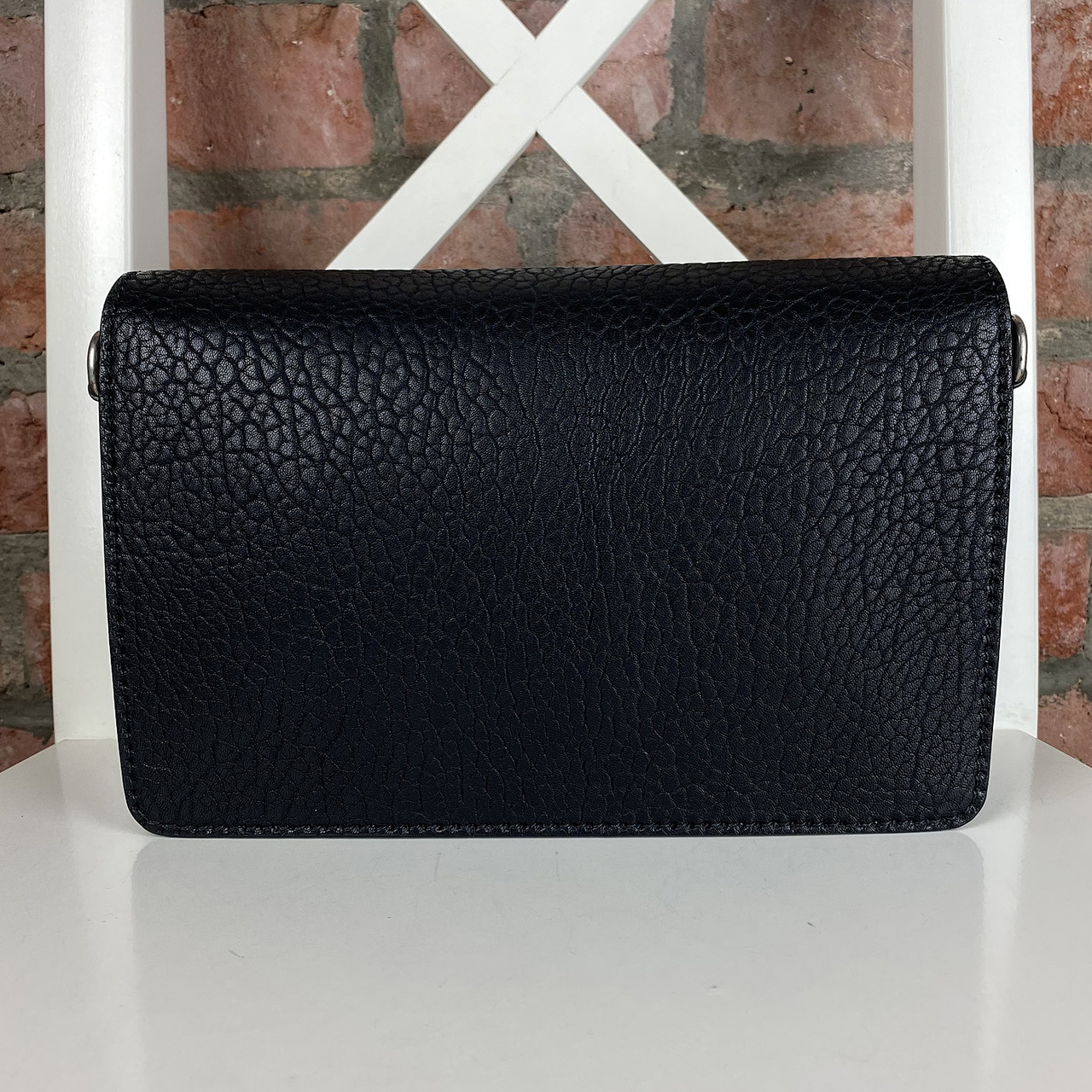 Внутри подкладка из черной замши. Удобно структурированное внутреннее пространство: основное отделение, и два плоских отделения по бокам. Внутри основного отделения карман на молнии.