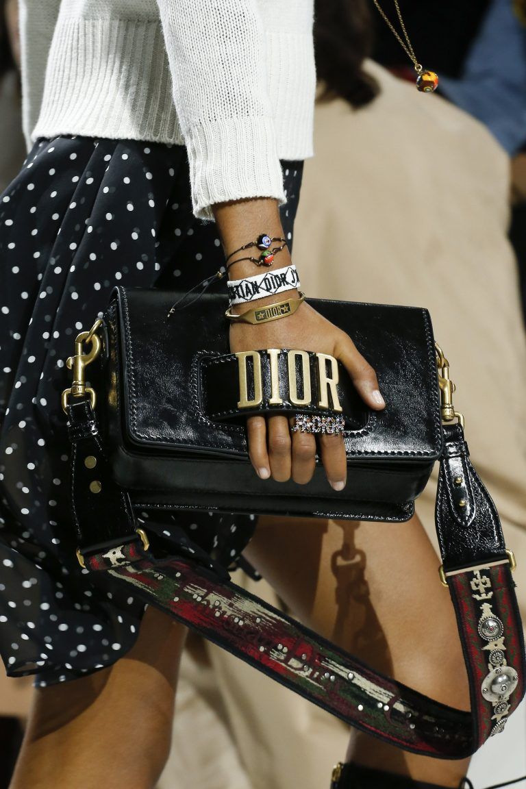Сумка знаменита тем что ее можно носить на широком плечевым ремне, но а главная "фишка" ее дизайна - ее можно носить продев руку за широкую кожаную пластину с крупным лого DIOR.