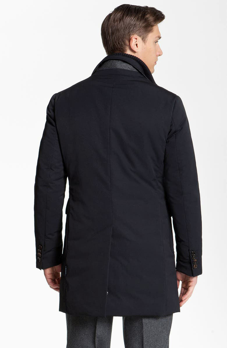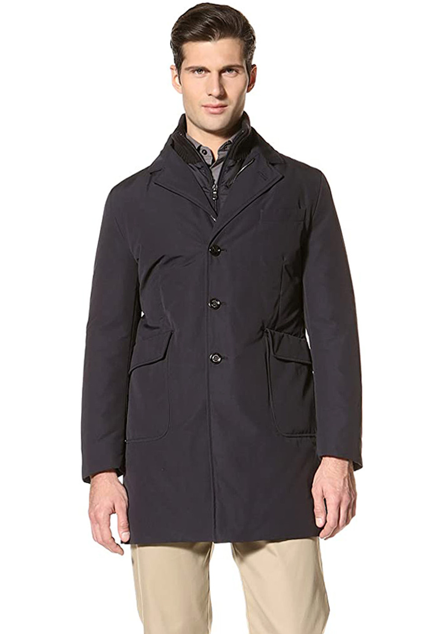 Стильное мужское пуховое пальто, модный современный городской фасон - модель дополнена закрывающей грудь и горло утепляющей съемной подстежкой, по длине пальто с запасом прикрывает пиджак - отличное дополнение к деловому стилю.