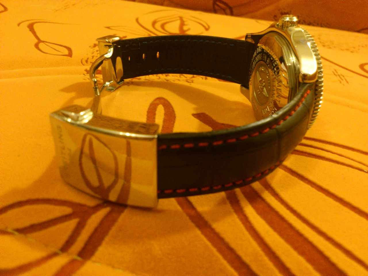 И второй вариант для кожаных ремней , покупал тут на форуме у недобросовестного продавца и она растегивалась при малейшем давлении, благо специалисты из сервисного центра брайтлинг ее подтянули и теперь она не расстегивается , хотя если зацепить за что-то может и расстегнется но пока такого не было у меня,вроде надежно сидит.