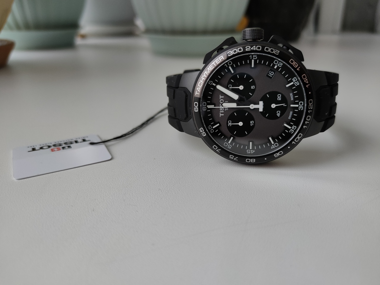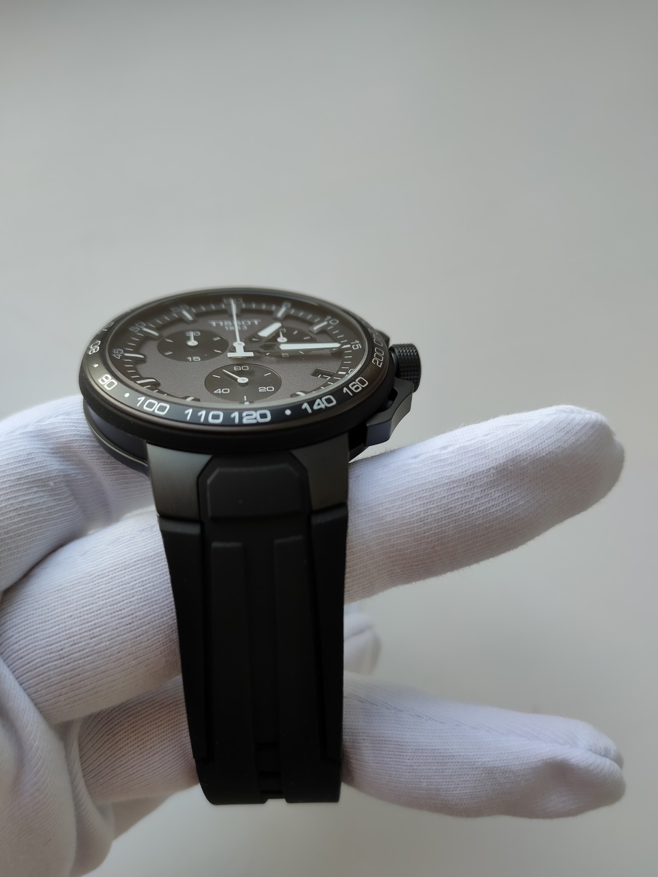 В продаже отличная модель хронографа от Tissot, посвященная любителям велоспорта. Солидный мужской размер корпуса, интересный, но в тоже время строгий дизайн, отличный мягкий силиконовый ремешок и дорогой кварцевый калибр делают данную модель надежным и универсальным инструментом в руках хозяина. Интересное оформление заводной головки и пушеров хронографа. Задняя крышка декорирована гравировкой в виде системы ведущих звезд велосипеда. Полнейший комплект, включая роман о компании на русском языке.