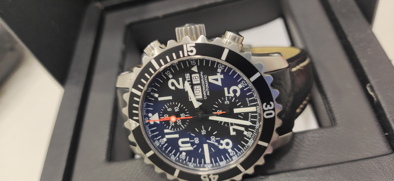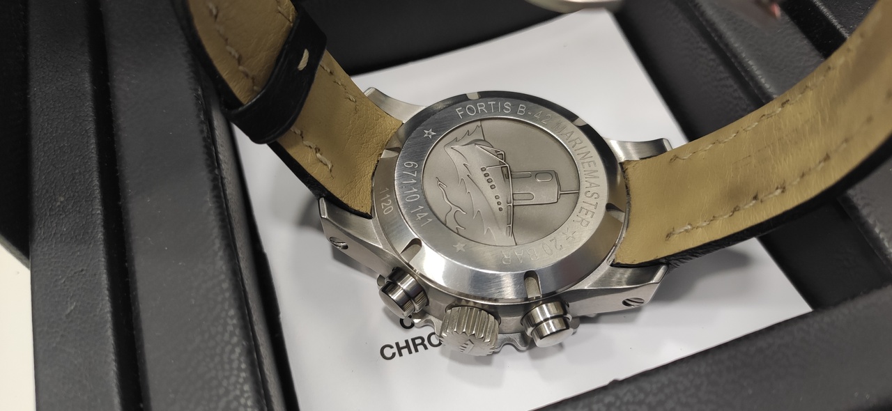 Fortis B-42 marinemaster Chronograph (черный цифер) на коже