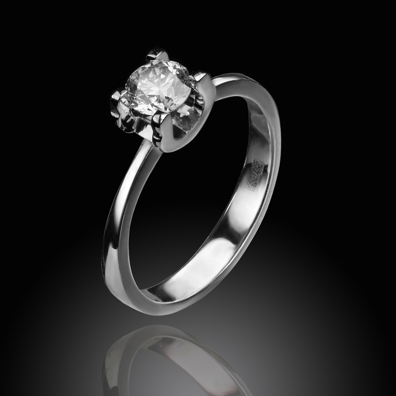 Кольцо из белого золота с бриллиантом 0,31 карат (сертификат МГЦ)