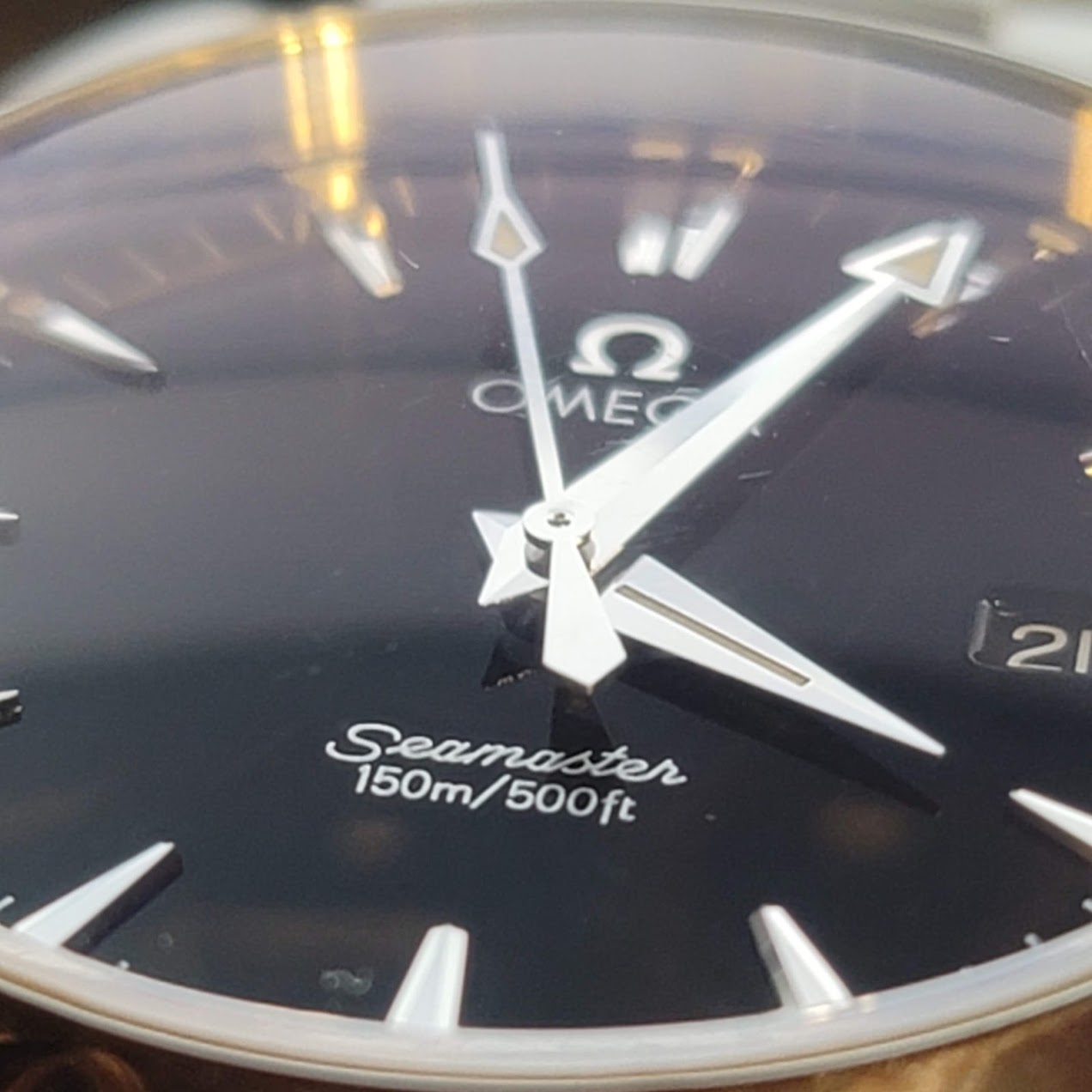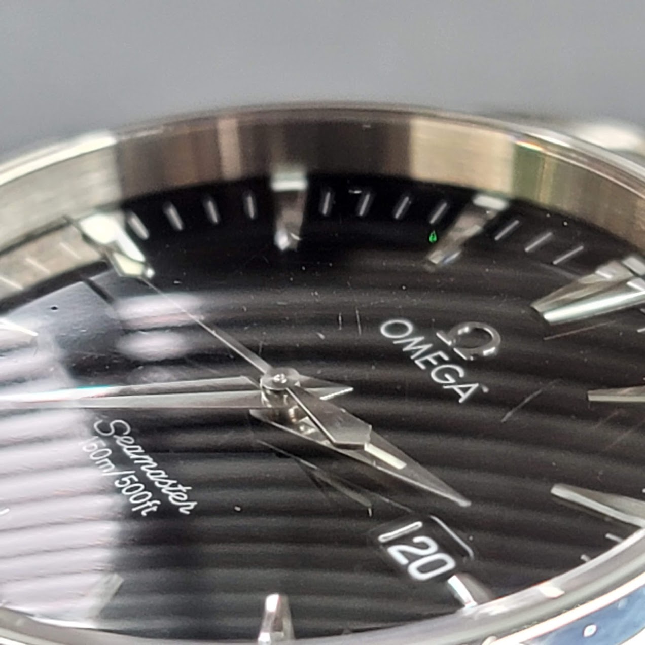 Всем Омеговцам огромный привет! Вобщем история у меня какая, приобрел недавно по случаю кварцевую акватеру, по серийнику если пробивать то выдает что сделана она в 2010 году, по-моему это первое поколение, но не уверен, понятно что покупал бу через интернет поэтому уверенности нет ни в чем. Но не хочу вас загружать вопросами определения оригинальности по фоткам потому что мне кажется это просто потеря времени, подделки сейчас могут быть такого качества что по фоткам не определишь, не знаю правда как насчет именно этой модели, так как особо за подделками не слежу. Поэтому попытаюсь сформулировать только самые основные моменты и вопросы. Вобщем ближе к делу, из того что мне самому кажется подозрительным - лошадка не такая как на моей такой же акватере 1998 года - видно немного другая голова и еще там где на лошадке висят какие то круглые шарики 7 и 3 видно что последний из трех шарик как будто недолит, потом внутри где механихм все понятное дело все что можно я уже осмотрел в часовую лупу и никакой разницы не нашел кроме того что в старой акватере есть еще дополнительная какая то крышка а в этой ее нет и вместо нее какая то байда типа пружины для батарейки, все остальное и маркировки и камни и болты все совпадает. И последний самый неприятный момент это царапины на стекле, прибор показывает что сапфир, возможно что царапины на покрытии, но было ли в этий модели покрытие тем более на наружной стороне? По размерам, зазору, посадке стекла, цвету ободка ничего не похоже что его меняли, но как тогда такое может быть? Я честно говоря теряюсь в догадках, или часы вообще фейк или заменено стекло или в новых партиях были версии с покрытием? Вобщем напишите кто что думает, заранее спасибо, фото долго мучался, к сож лучше сделать не получается, эти царапины их очень много, но они в основном мелкие и находятся как бы по ценру купола и вокруг и под какими то углами и освещением их вообще не видно, под какими то видно просто очень хорошо, но в в кадр поймать сложно.