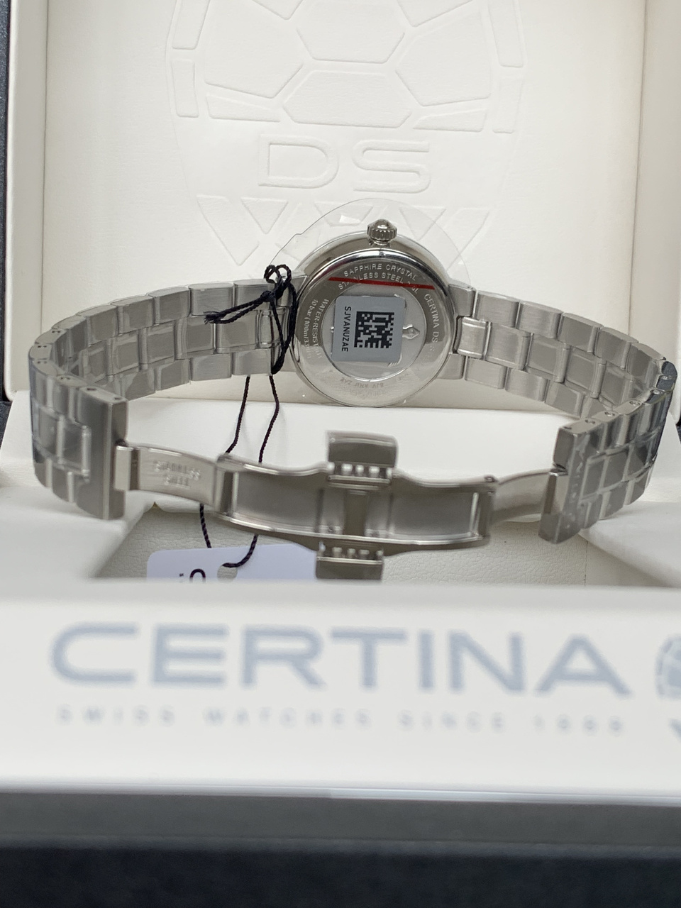В продаже классная модель от Certina - отличный браслет, сапфировое стекло с двойным антибликовым покрытием, многокомпонентный цифер с гильоше и накладными метками, большая дата и прецизионная точность в +/-10 секунд в год.