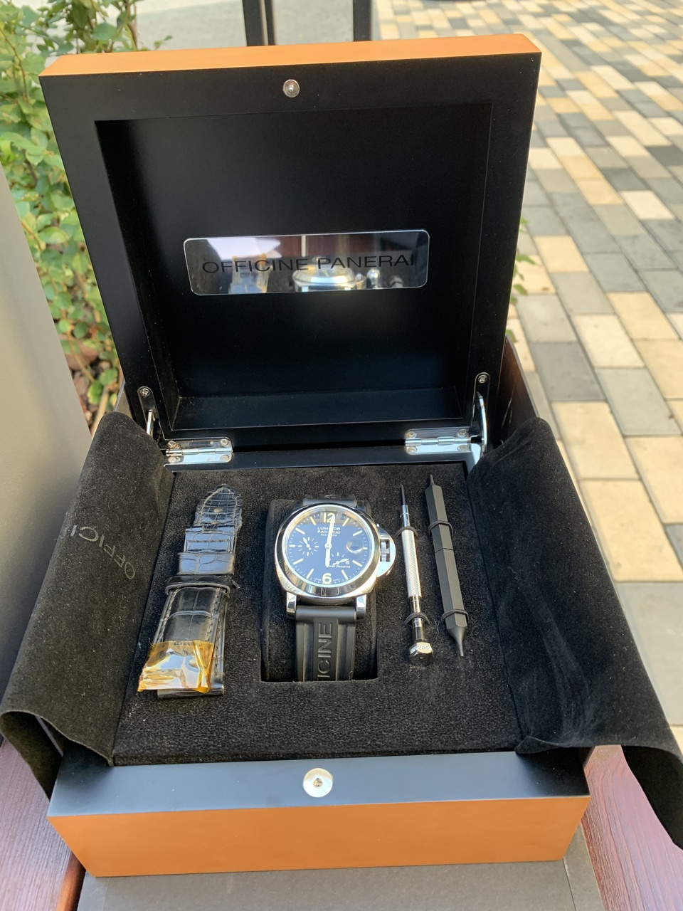 Часы на оригинальном памовском каучуковом ремешке. В комплекте также идёт кожаный ремешок, но он уже очень устал, считайте, что его нет.