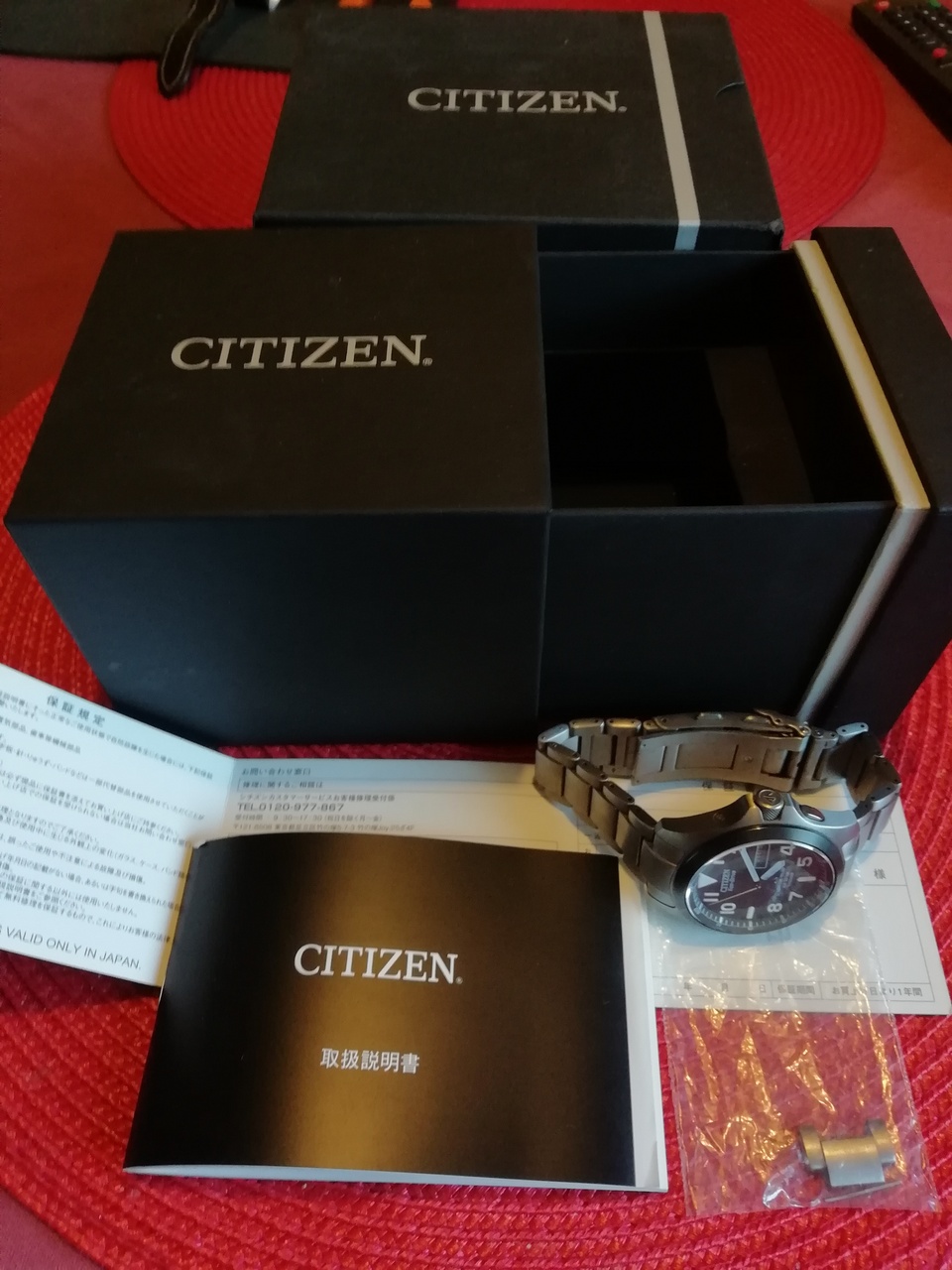 Комплект - коробки, инструкция (на японском и английском). гарантийная карта внутрияпонская, не заполнена. снято одно звено (в комплекте).