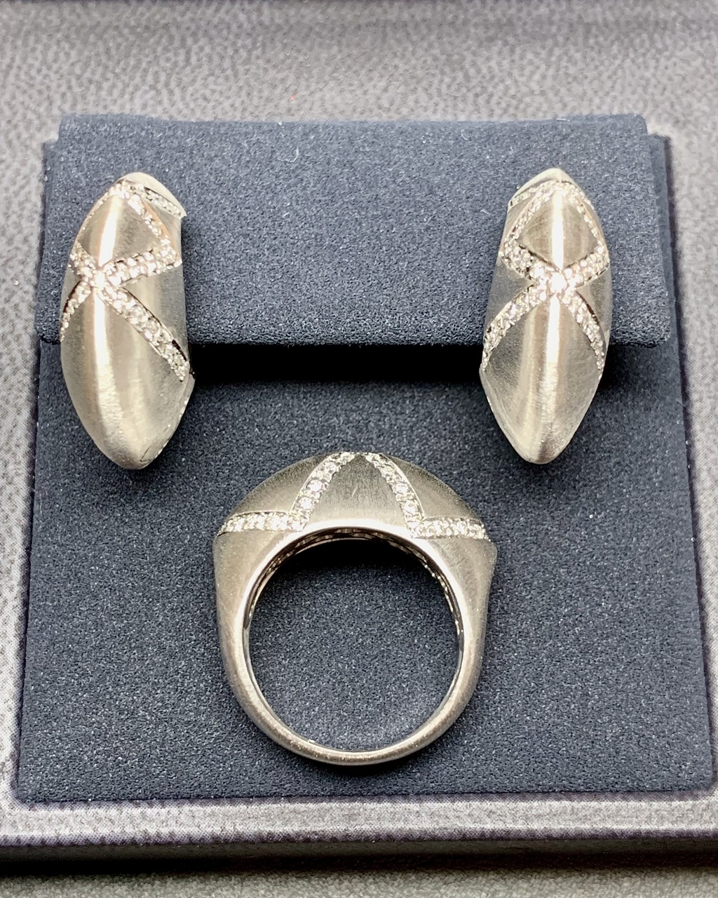 ПОТРЯСАЮЩИЙ КОМПЛЕКТ! СЕРЬГИ И КОЛЬЦО ИЗ БЕЛОГО ЗОЛОТА 750 (ЕВРОПА)