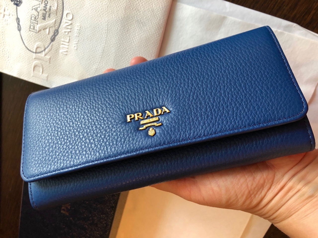 PRADA. Женский кошелек. Большой, на кнопках. НОВЫЙ. Мягкая зернистая кожа (Vitello Grain). Цвет: темно-синий (BLUETTE)