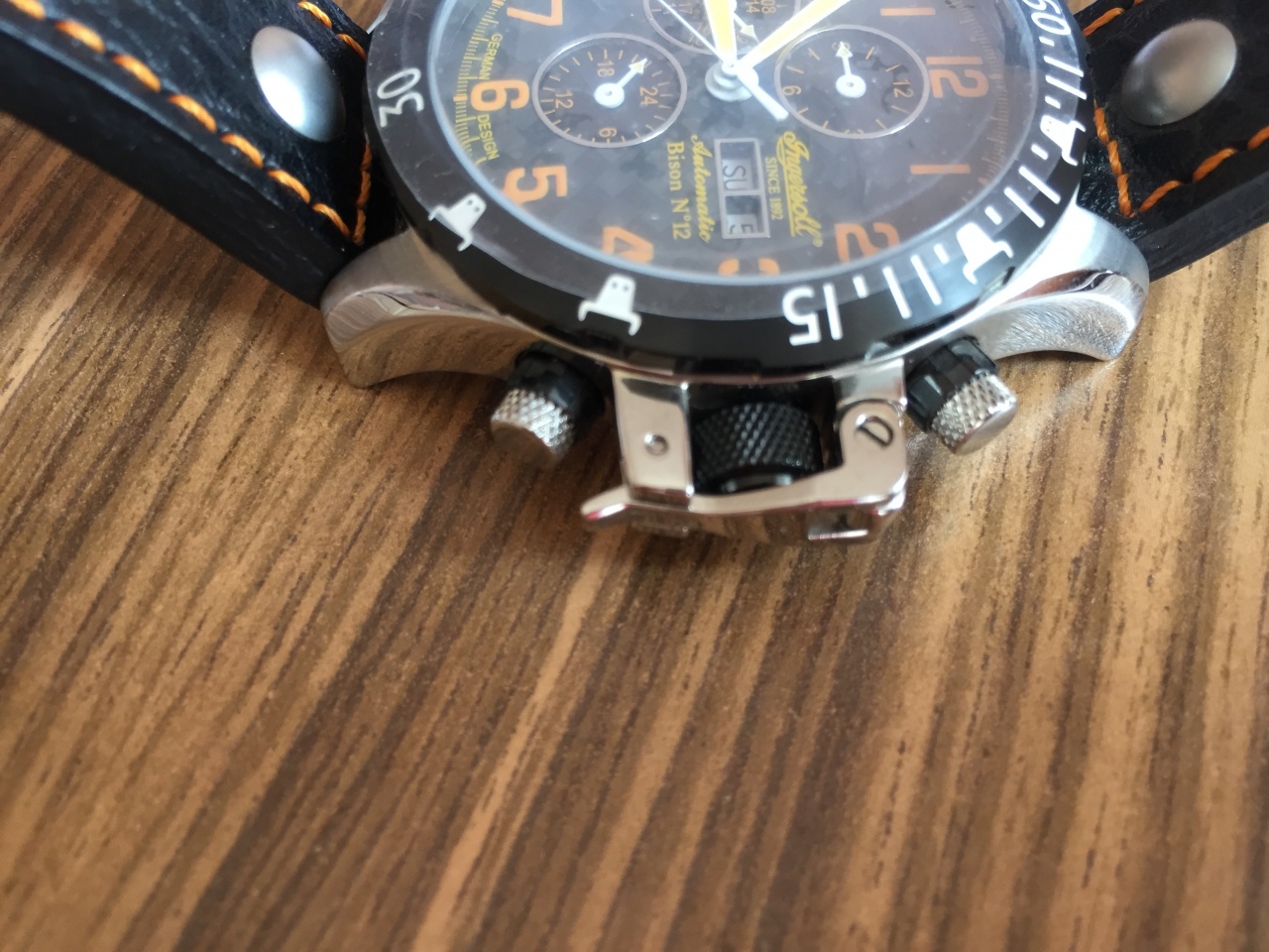 Механический калибр с автоподзаводом 520 (количество камней: 20). Запас хода 40 часов.