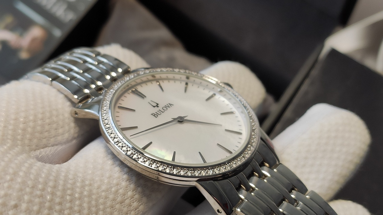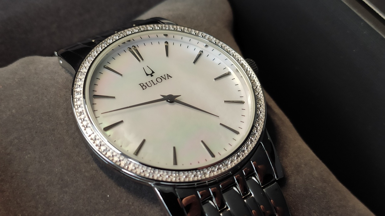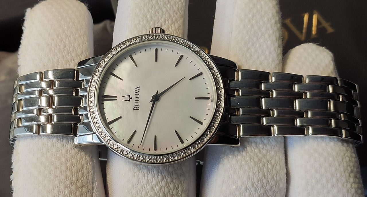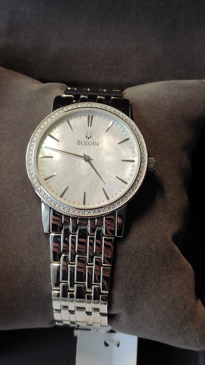 ПЕРВОКЛАССНЫЕ BULOVA CLASSY DIAMOND \ 25 БРИЛЛИАНТОВ \ НАТУРАЛЬНЫЙ ПЕРЛАМУТР \ БРАСЛЕТ \ в комплекте