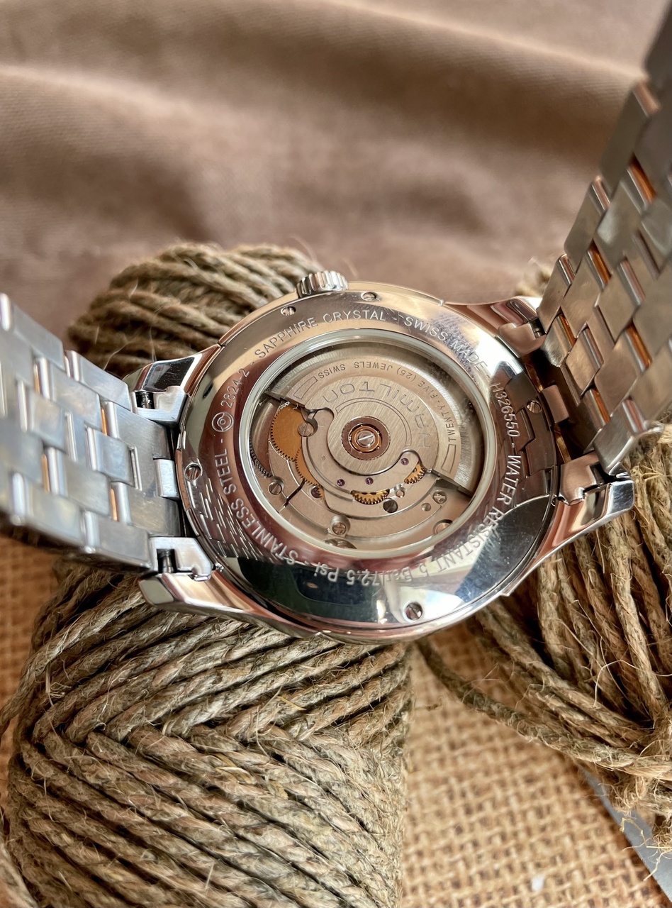 Прозрачная задняя крышка придает современный характер классическому дизайну Jazzmaster Viewmatic. Идеальный баланс современного часового искусства и мастерства исполнения, воплощенный в элегантных часах.
