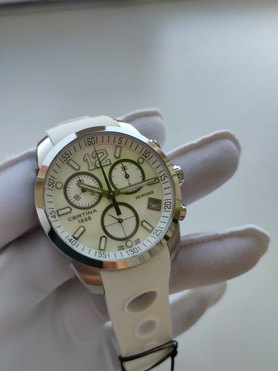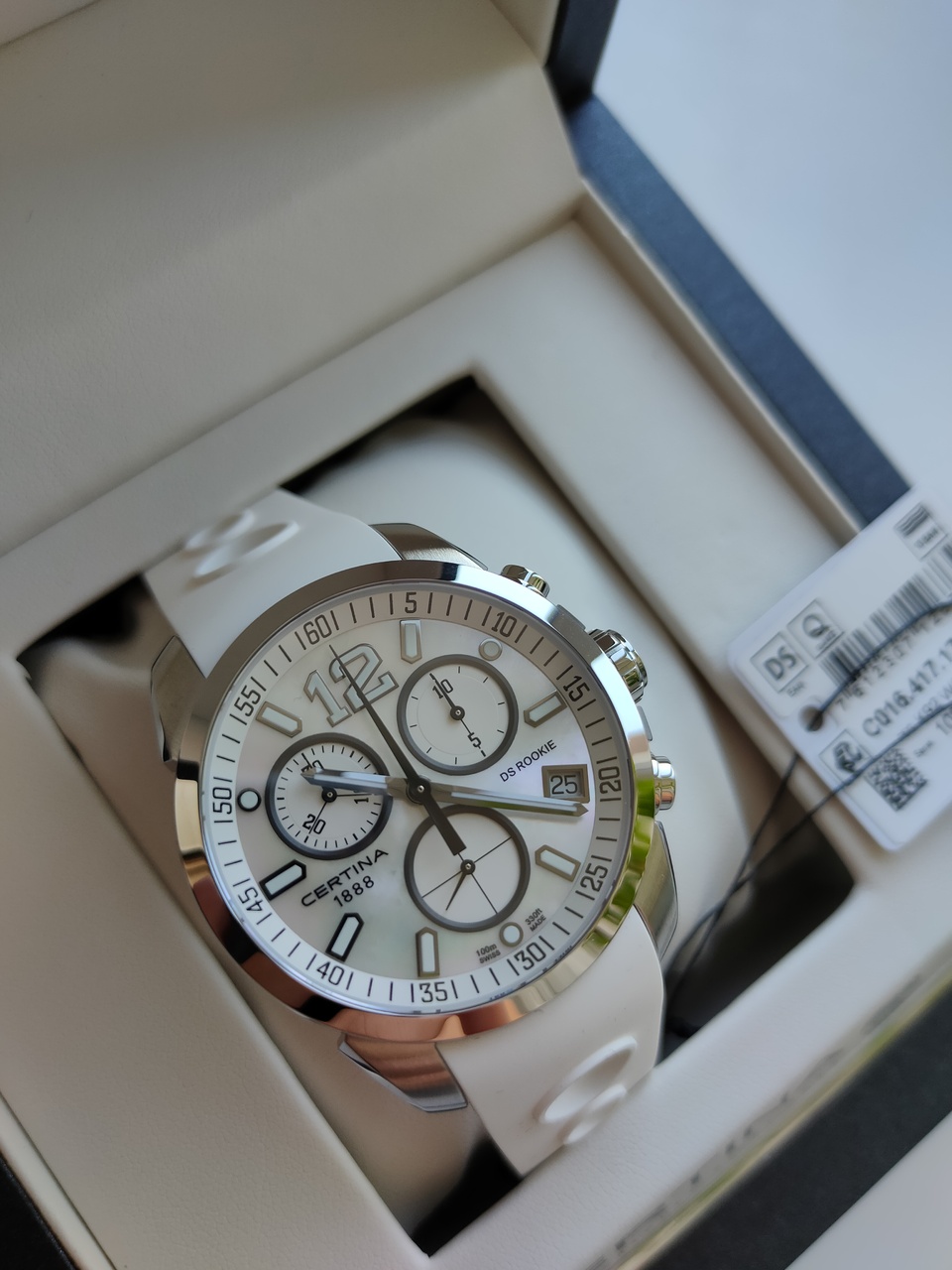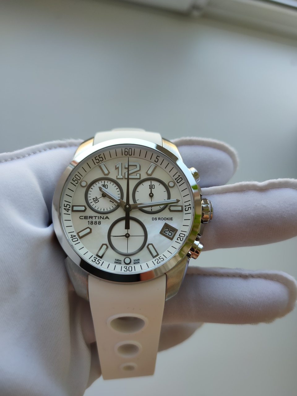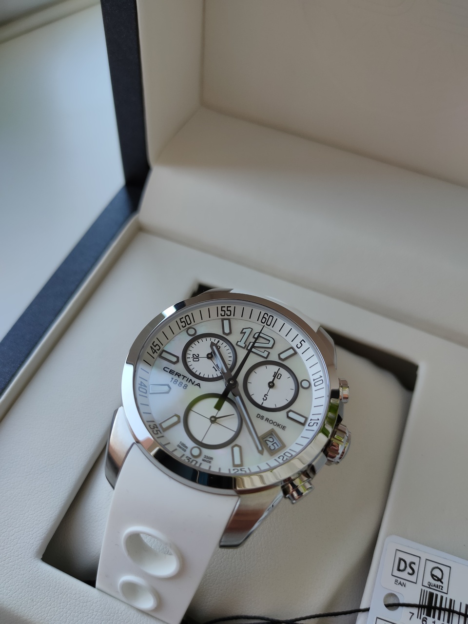 В продаже отличный женский спортивный хронограф от именитого производителя. Идеальное соотношение цены и качества. Перламутровый цифер с накладными элементами, красиво переливающийся на солнце, дорогой кварцевый калибр, отличный люм, шикарное качество обработки, фирменная технология DS (Double Security/Двойная Надежность): особая система противоударной и антивибрационной защиты механизма, повышенная надежность от влажности. В живую часы выглядят гораздо богаче и интереснее чем на фото. По характеристикам, на мой скромный взгляд, намного интереснее японских часов в данном ценовом диапазоне....
