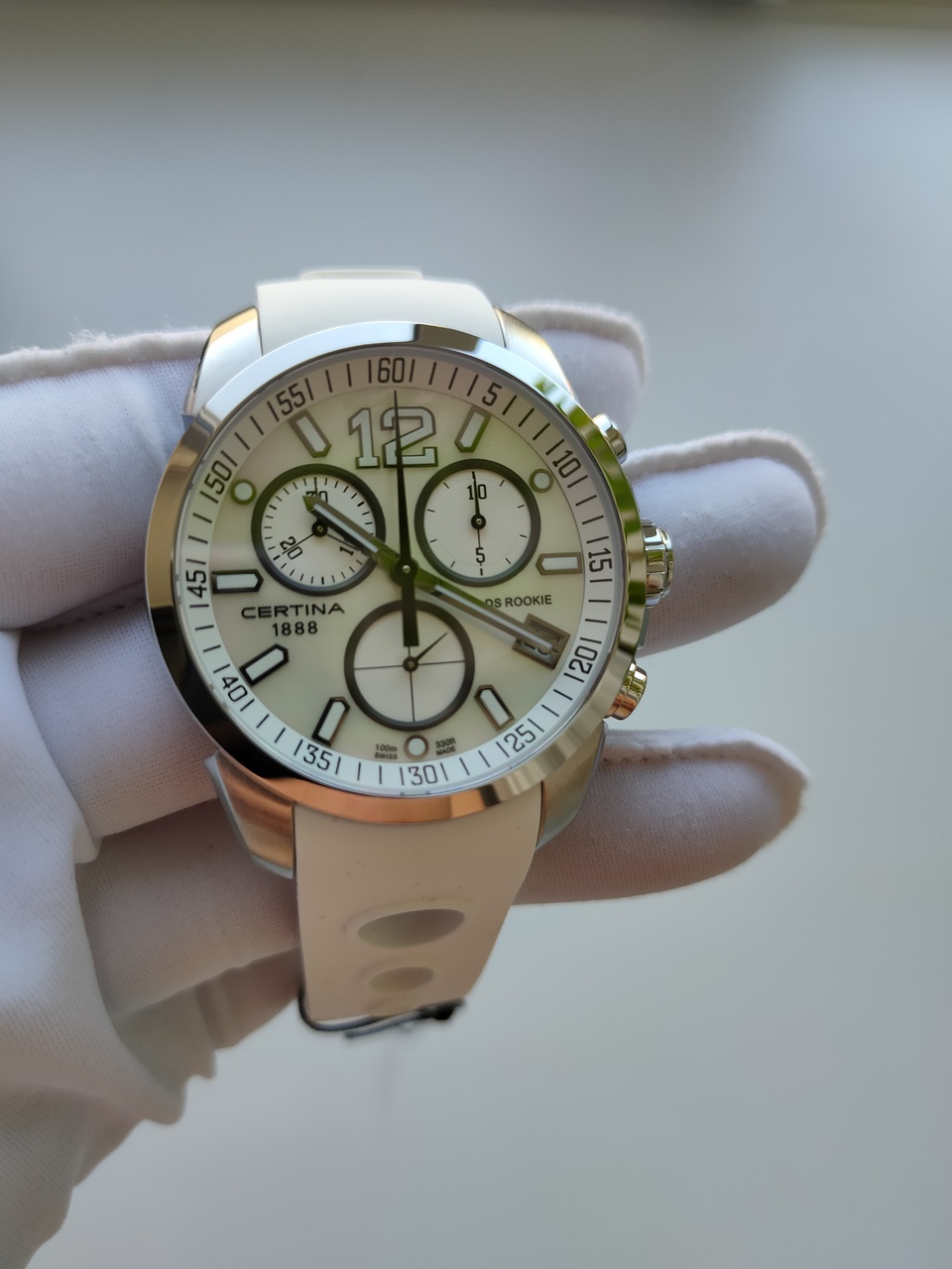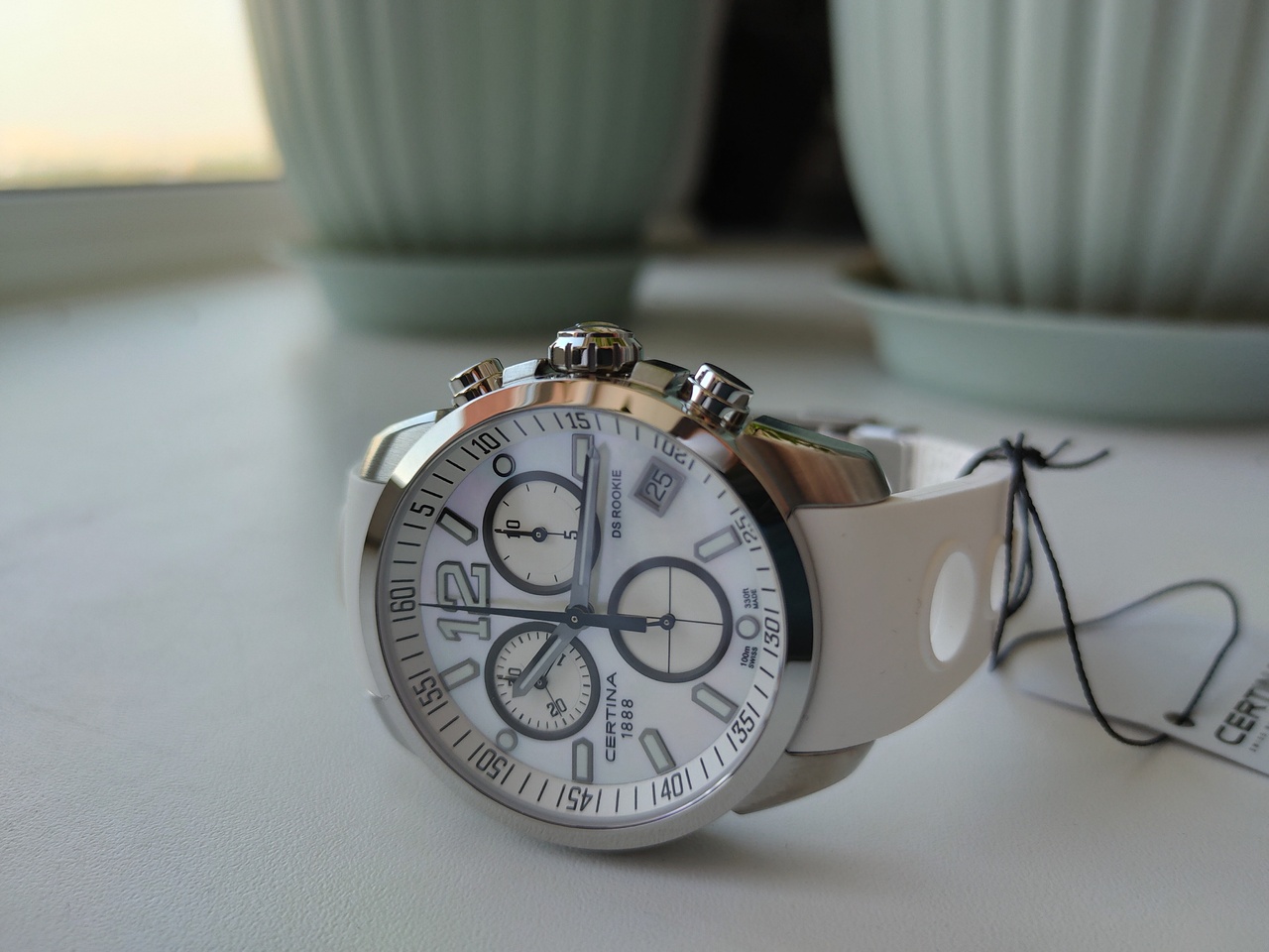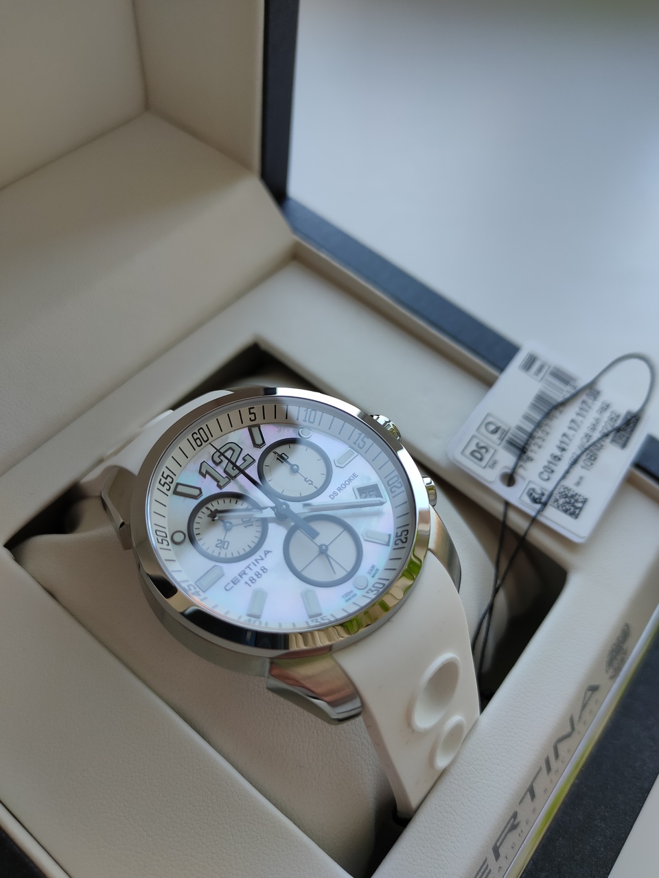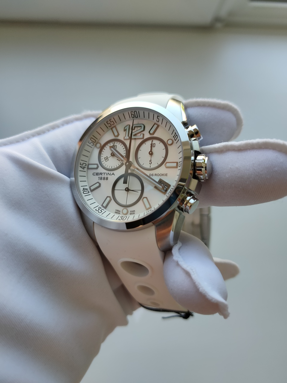 В продаже отличный женский спортивный хронограф от именитого производителя. Идеальное соотношение цены и качества. Перламутровый цифер с накладными элементами, красиво переливающийся на солнце, дорогой кварцевый калибр, отличный люм, шикарное качество обработки, фирменная технология DS (Double Security/Двойная Надежность): особая система противоударной и антивибрационной защиты механизма, повышенная надежность от влажности. В живую часы выглядят гораздо богаче и интереснее чем на фото. По характеристикам, на мой скромный взгляд, намного интереснее японских часов в данном ценовом диапазоне....