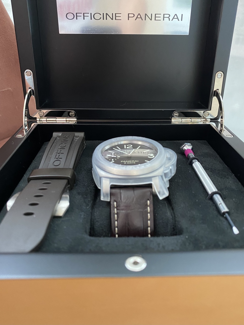 Приобретал в конце 2017 года новыми у самого авторитетного продавца ПАМов на форуме. Все документы с печатью, все бирки - в наличии. Комплект 100% полный. У оригинальной отвертки сразу же выкрутился крепежный винтик, и я его не нашел, но приобрел вместо нее здесь же на форуме отвертку из Франции - надежнее и красивее оригинальной. Оригинальная также в наличии. По состоянию часов - 564 носил более-менее регулярно, но не часто, т.к. сет у меня достаточно немаленький. Часы не полировались, и на них есть мелкие царапки, но это удел всех титановых ПАМов сразу после того, как с них снимают пленки. Отполировать при желании можно, но на мой взгляд смысла нет - новые появятся сразу же. Сейчас внешний вид на 5. Формально ставлю АА, но при этом, важный момент - я маниакально педантичен и аккуратен в носке, есть отзывы уважаемых форумчан, которые ранее приобретали часы из моей коллекции - все в идеальном состоянии внешне. Ответственно заверяю, что и эти ПАМы также ни разу не плавали, не бились, не ударялись, тем более не ронялись и т.д.