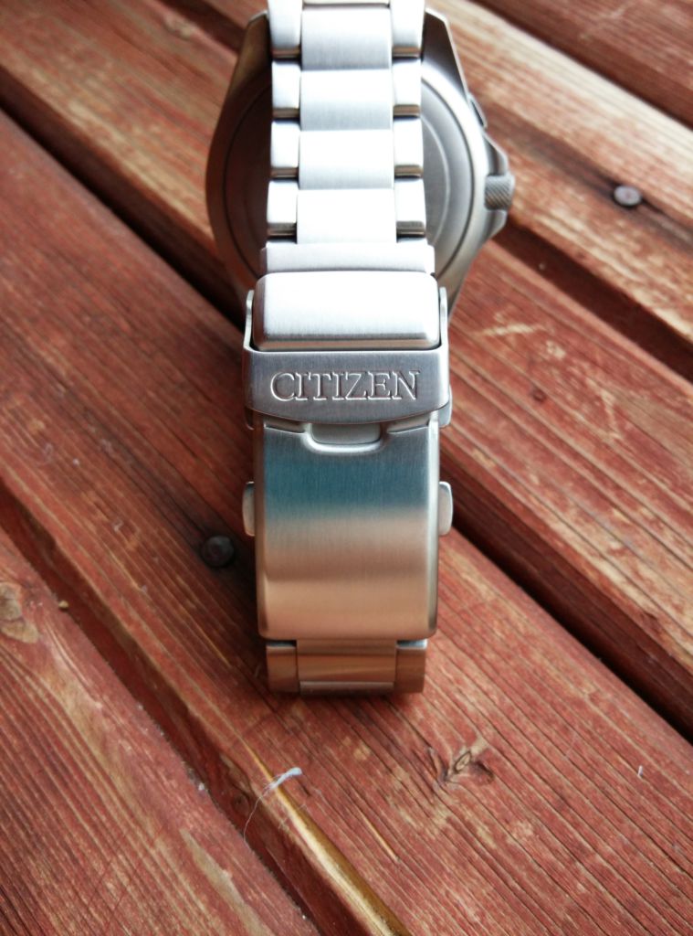 5. Браслет как браслет, титановый с покрытием Duratect, 18 мм общая ширина, 20 мм - крепление. Лежит хорошо, одел и забыл. Нигде не режет, не давит. Как он себя покажет на царапаемость я напишу через годик. Но одна фишка приятная есть и в браслете. Точность подгона к корпусу часов я указал, а есть ещё и возможность быстрой регулировки браслета. +/- 2/3 звена с шагом в 1/3 звена. Для этого на браслете есть ещё пара рычагов. Фото прикреплю. Мне пока не знаю зачем может понадобиться расширять браслет, на костюм для погружений слышал требуется расширять, но мне вроде не надо. Кстати, браслет имеет двойную застёжку, как обычно, сама она длиннее обычного, но это не доставляем неудобств.