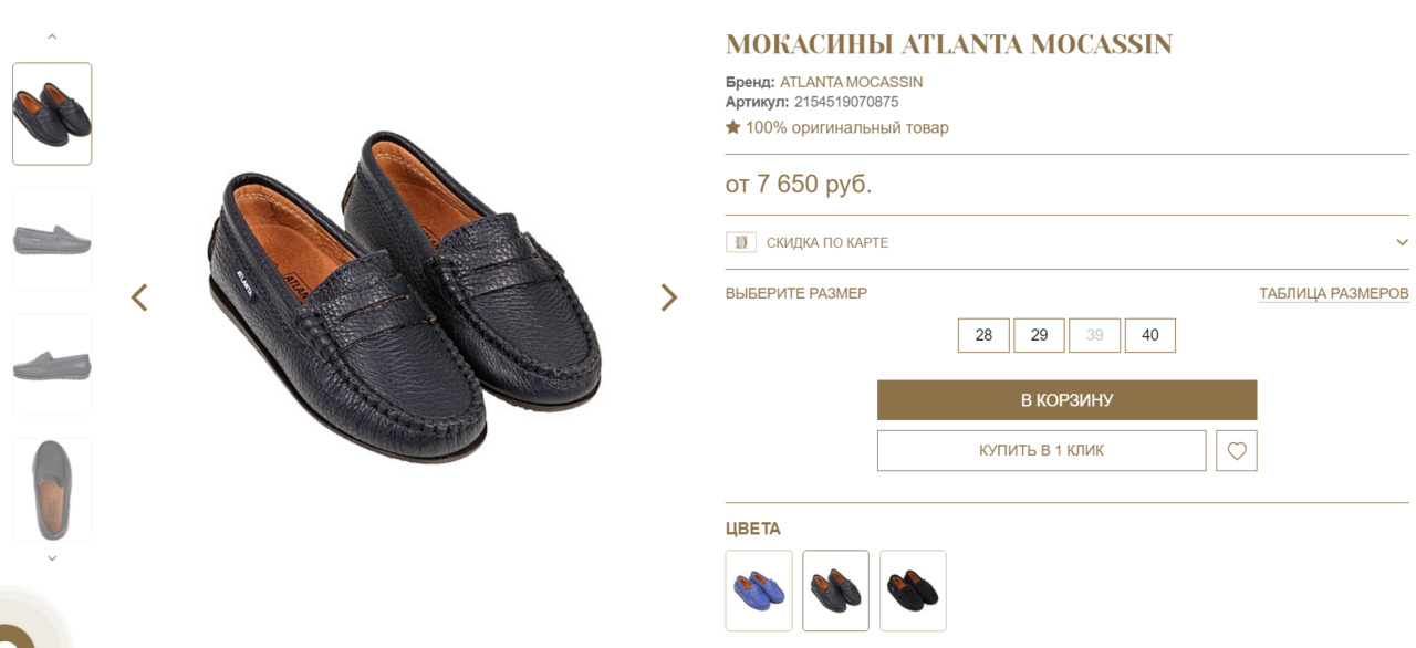 Кожаные мокасины ATLANTA MOCASSIN Португалия 37р