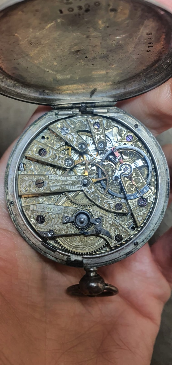 Старинные карманные часы the Baltic. Mеханизм с гравировкой.