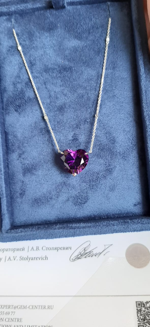 Кулон с аметистом огранки "Сердце" 11,91 карат (экспертное заключение МГУ)!