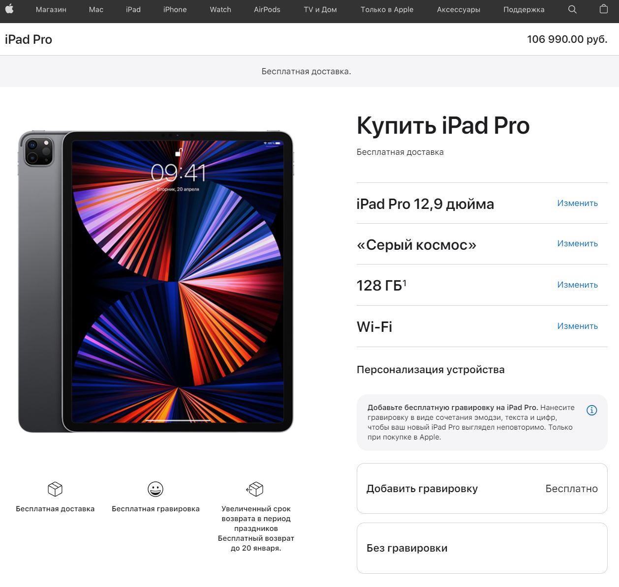Apple iPad Pro 12.9" Wi-Fi 128GB Space Grey (M1) 2021 - Часовой форум Watch.ru