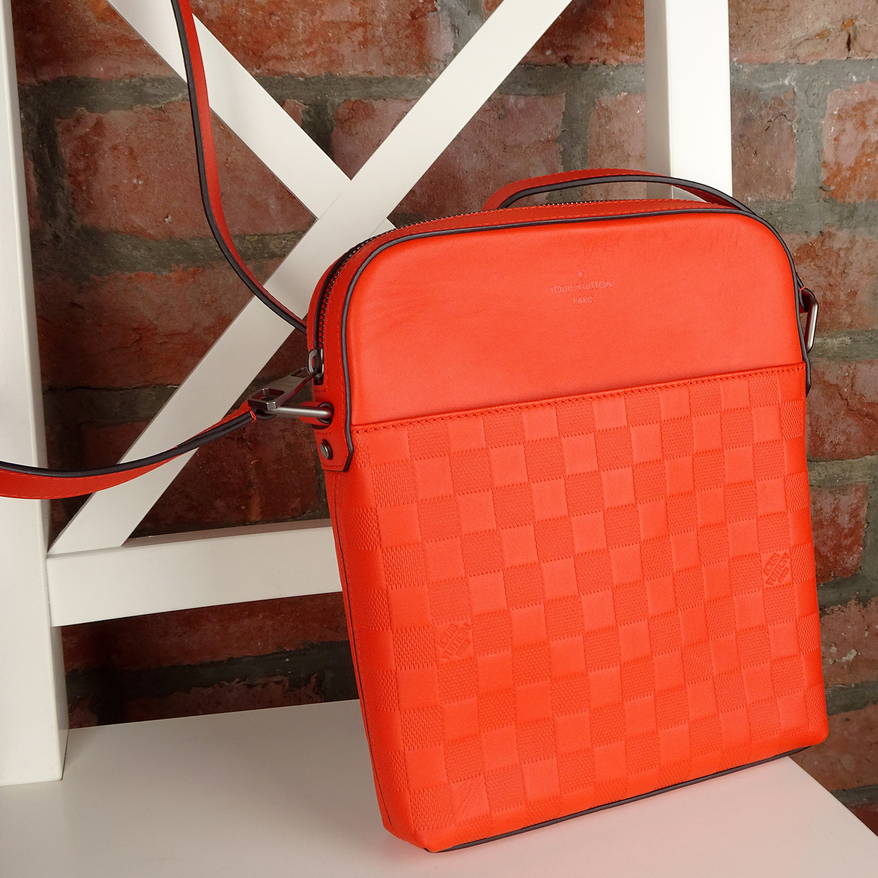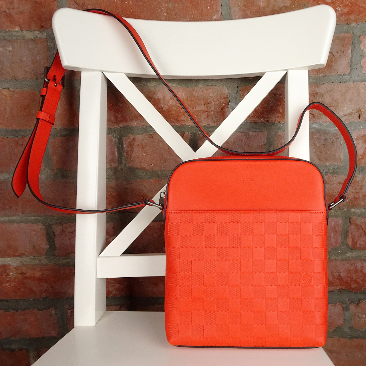 Комбинация материалов - натуральная гладкая кожи и фирменная кожа Louis Vuitton Damier Infini с рельефным тиснением узора-шашки Damier.