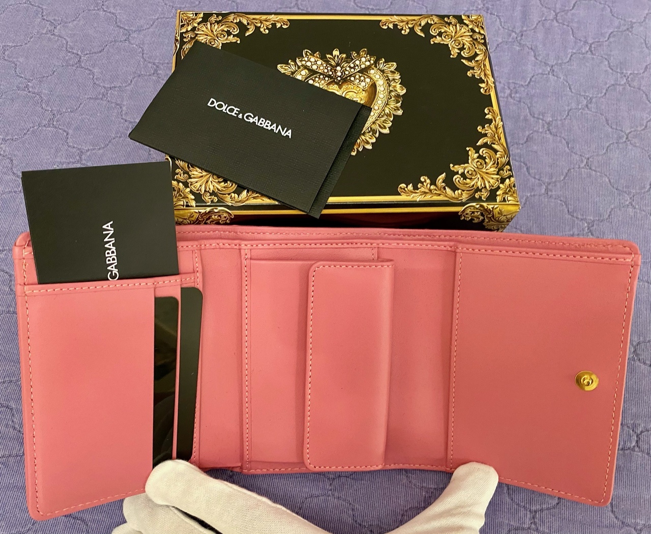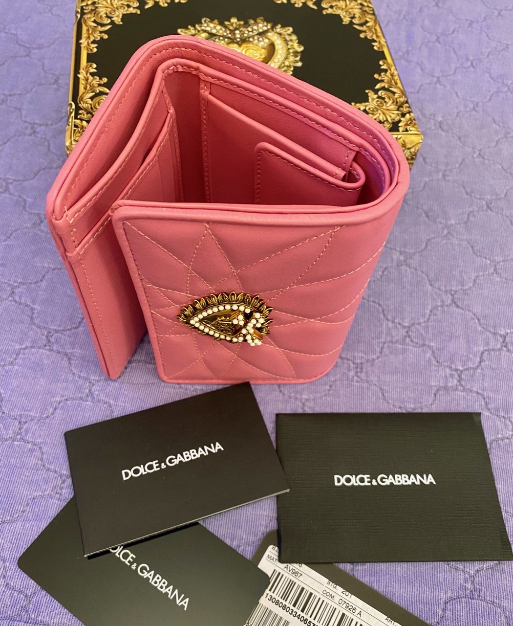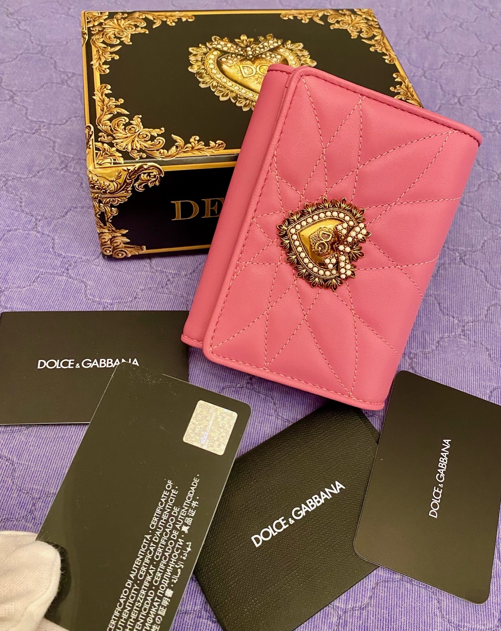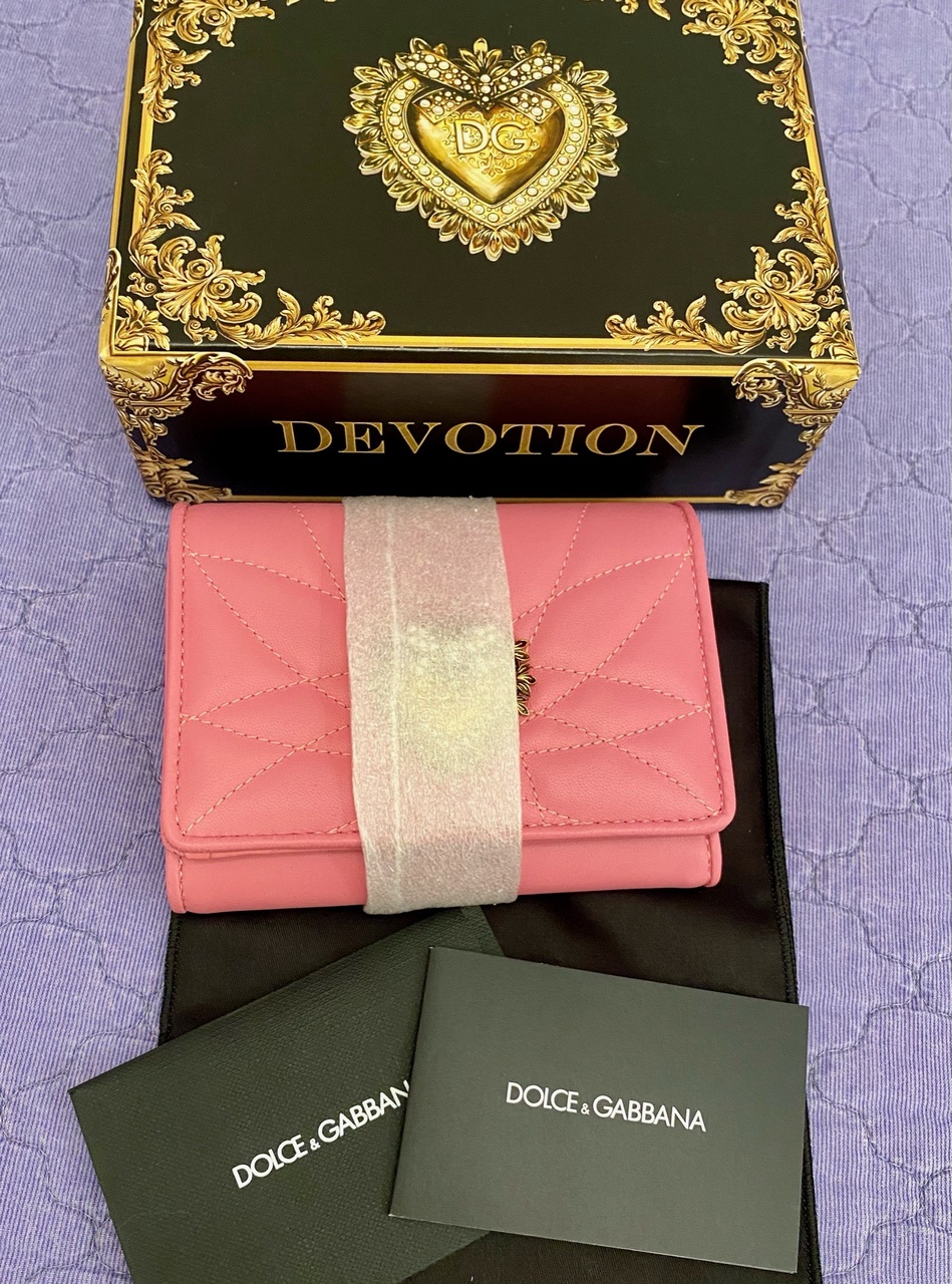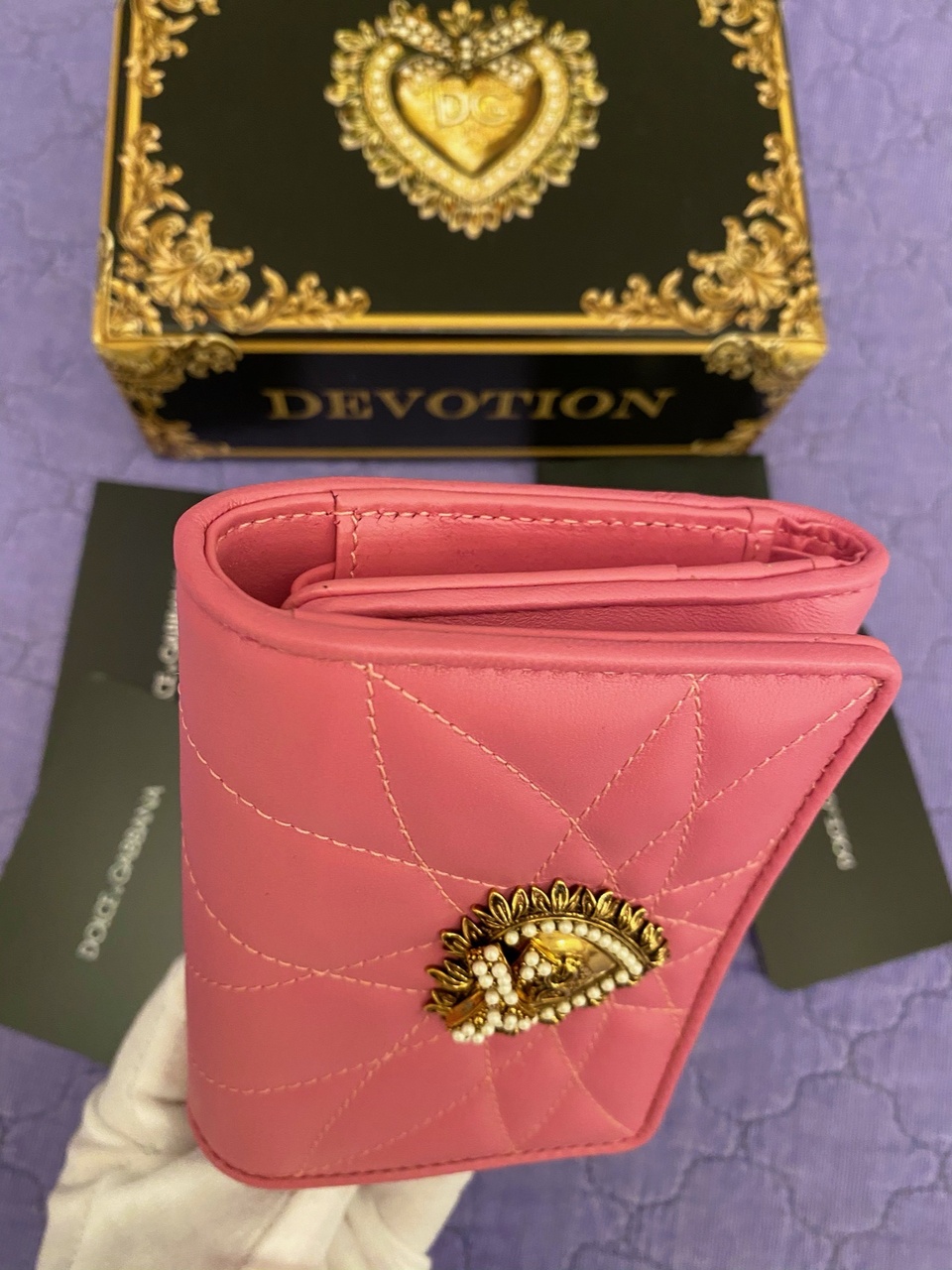 DOLCE & GABBANA. Женский кошелек. Среднего размера, на кнопке. НОВЫЙ. Стеганая гладкая кожа. Цвет розовый. Коллекция Devotion 2021 - Часовой форум Watch.ru