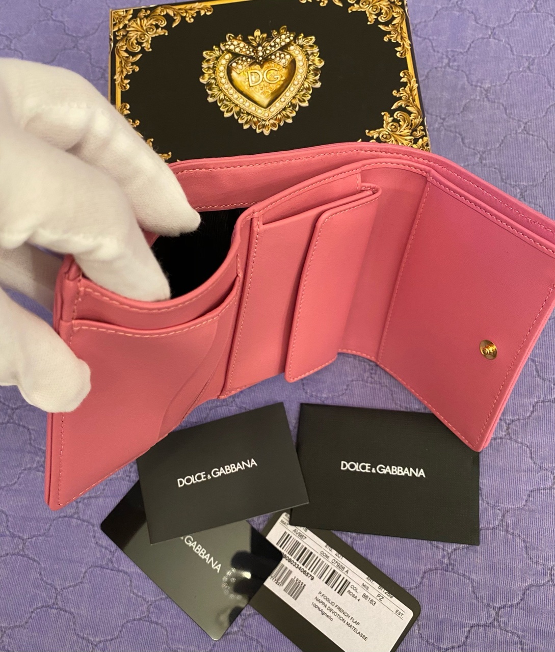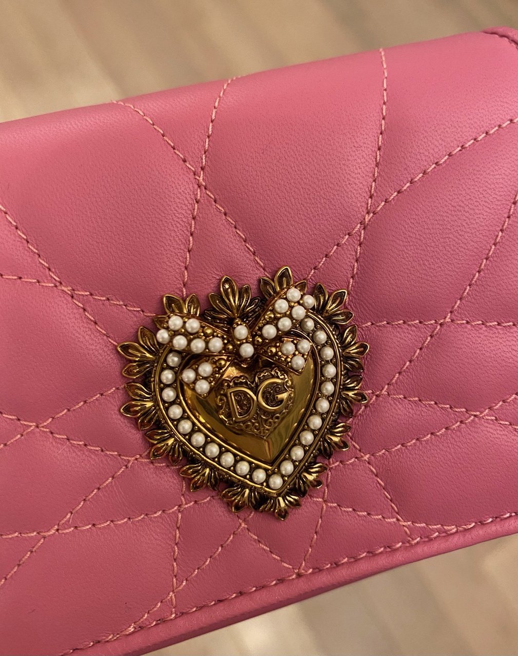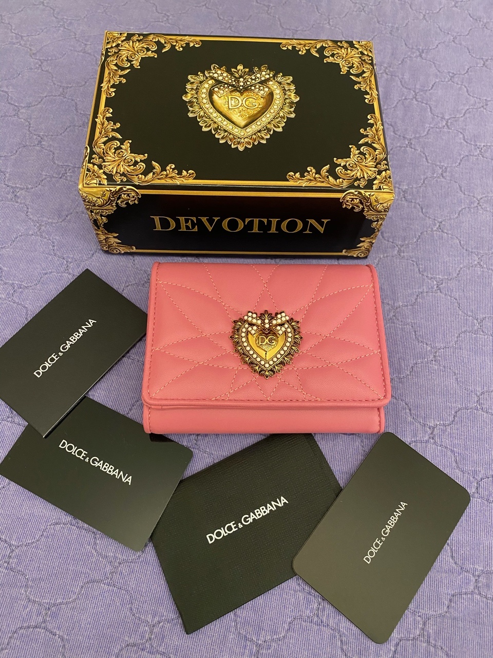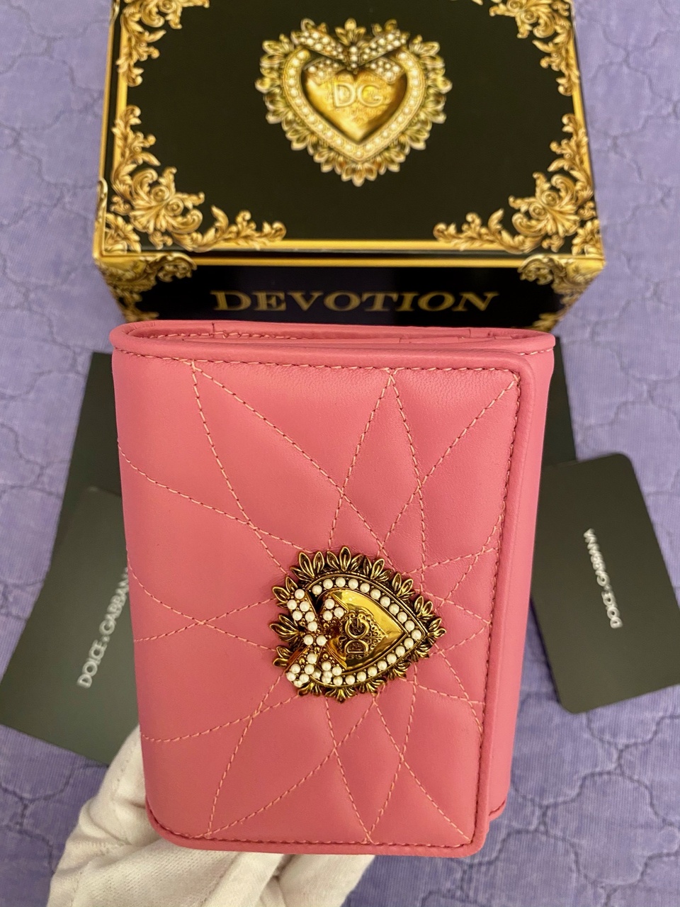 DOLCE & GABBANA. Женский кошелек. Среднего размера, на кнопке. НОВЫЙ. Стеганая гладкая кожа. Цвет розовый. Коллекция Devotion 2021 - Часовой форум Watch.ru