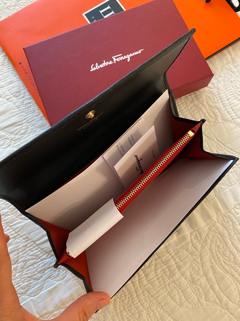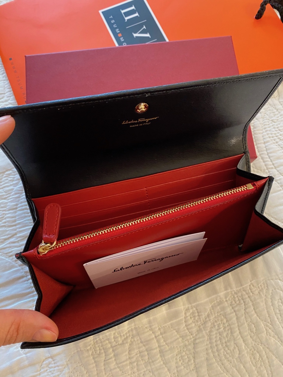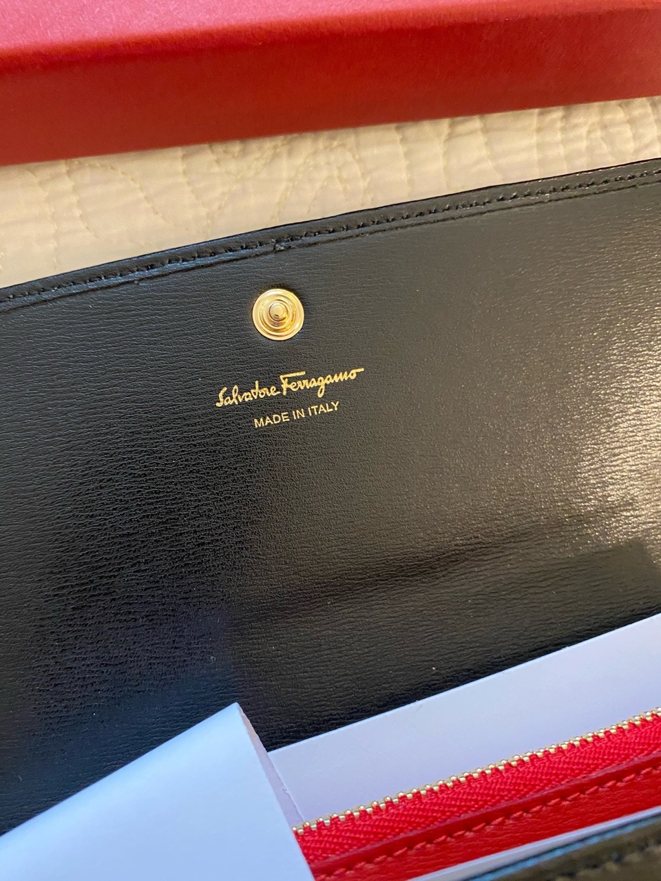 SALVATORE FERRAGAMO. Женский кошелек. Большой, на кнопке. НОВЫЙ. Кожа. Расцветка: черный и красно-черный внутри
