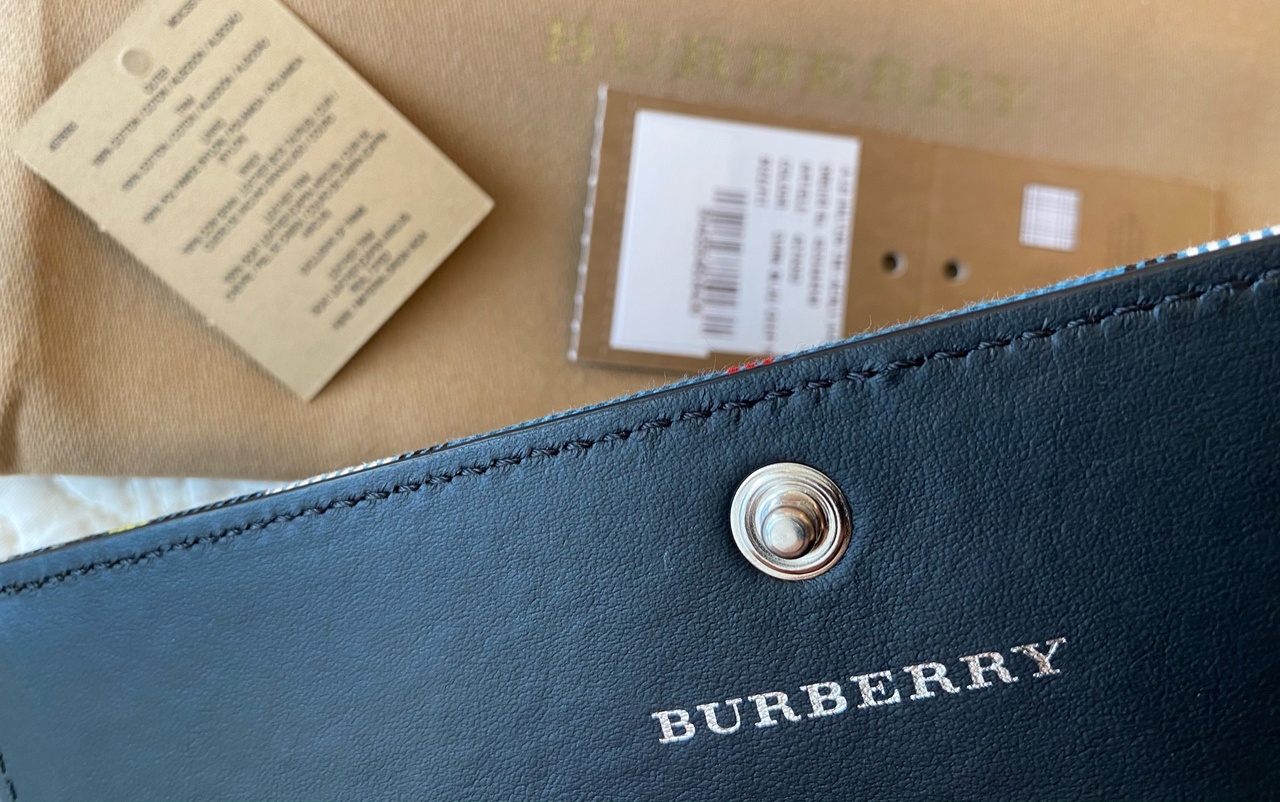 Красивая гамма оттенков с преобладанием синего и фиалкового, знаковая клетка Burberry Double Check. Внутри несколько отделов для купюр, документов, набор слотов для карт и отделение на молнии, позволят разместить все необходимое на каждый день. Номерное, номер выбит на коже внутри, изготовлено в Молдове.