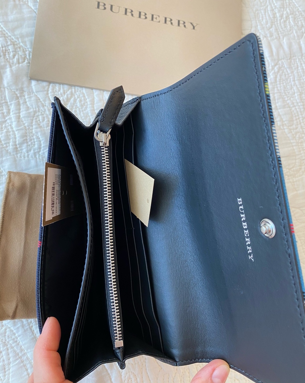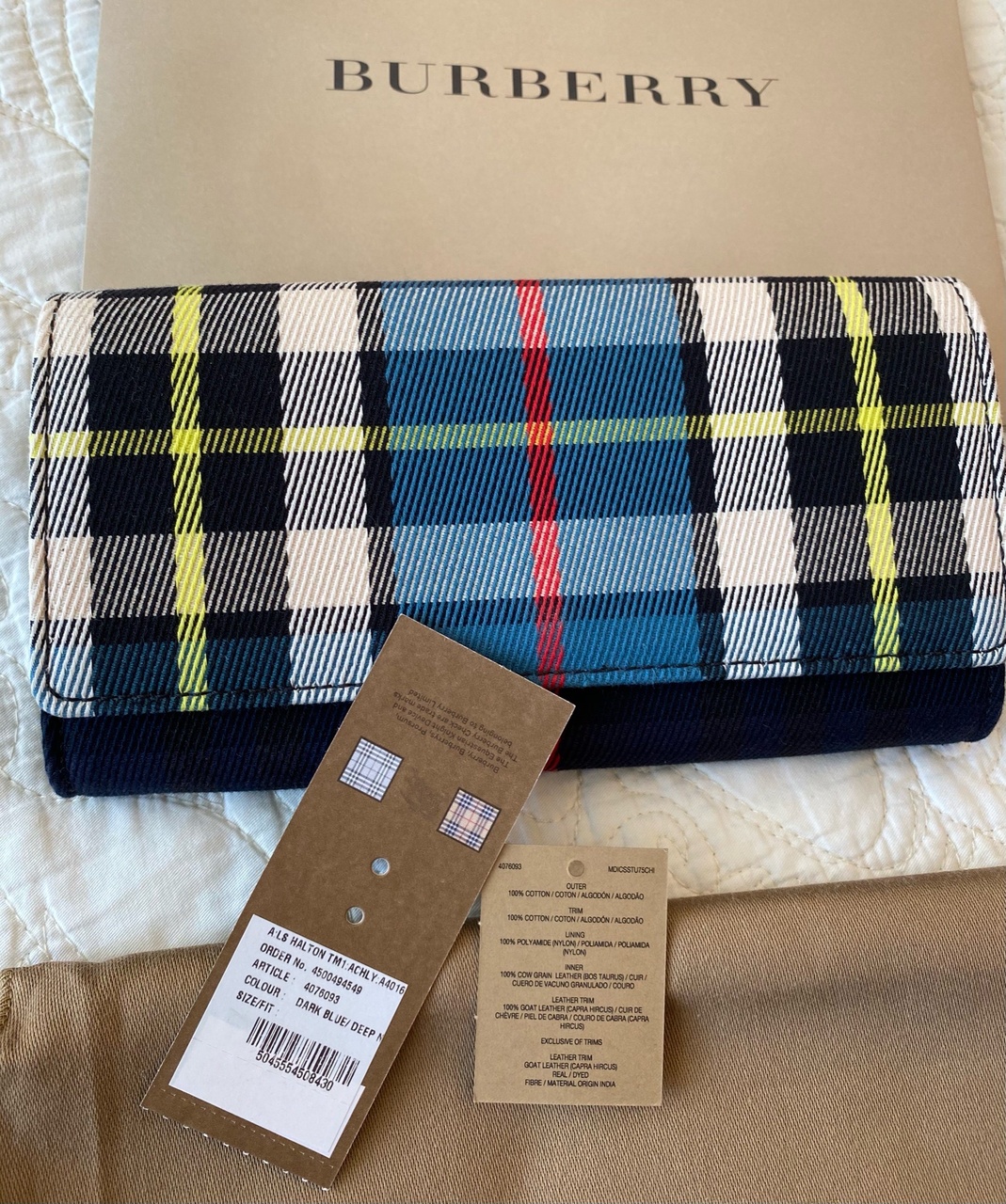 BURBERRY. Женский кошелек. Большой, на кнопках. НОВЫЙ. Текстиль с кожей. Расцветка: сине-фиалковая фирменная клетка - Часовой форум Watch.ru
