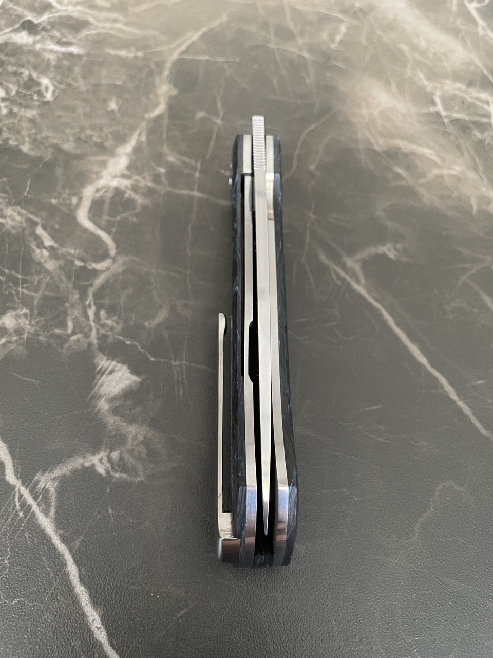 Рукоятка: авторский карбон ручной работы, стальная клипса с глубокой посадкой