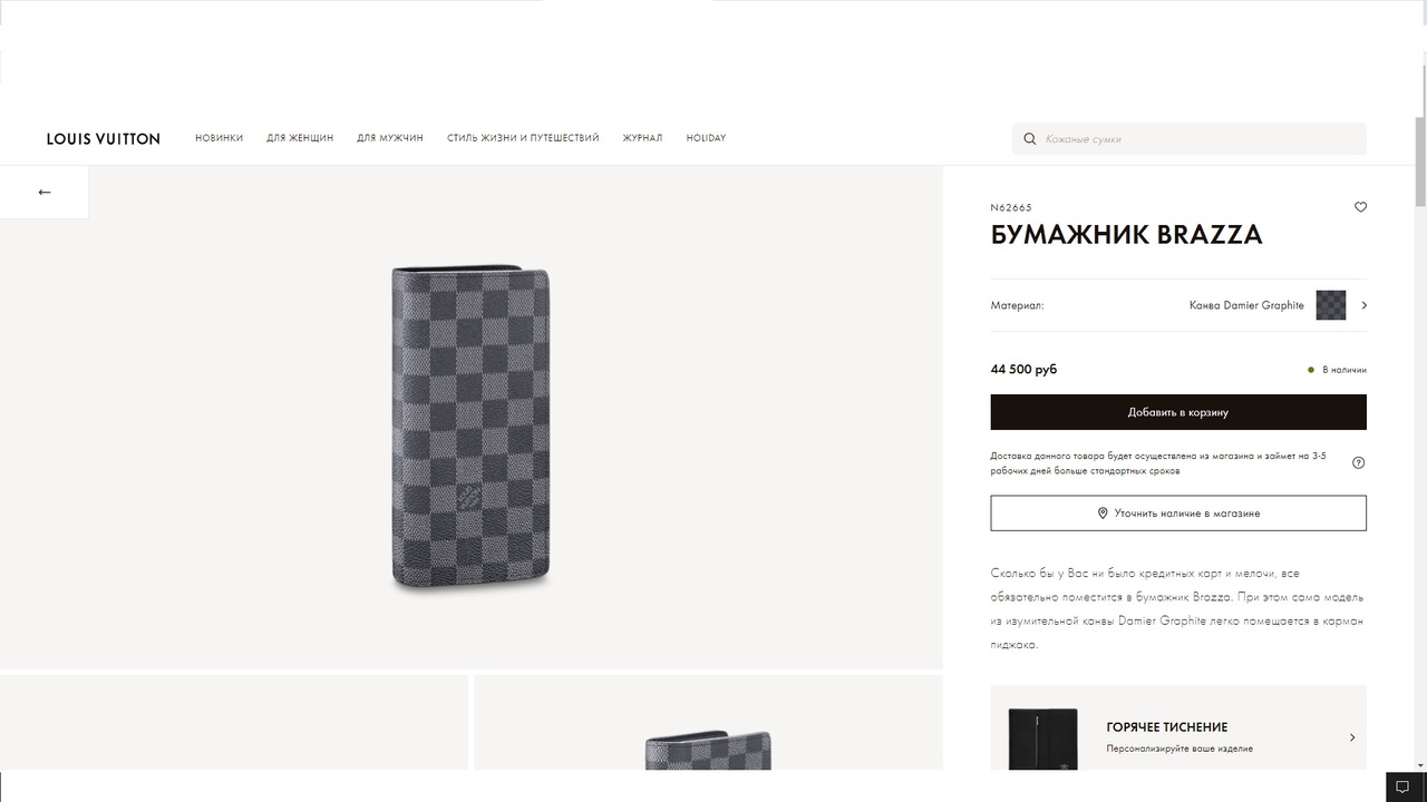 Бумажник LOUIS VUITTON Brazza Damier Graphite