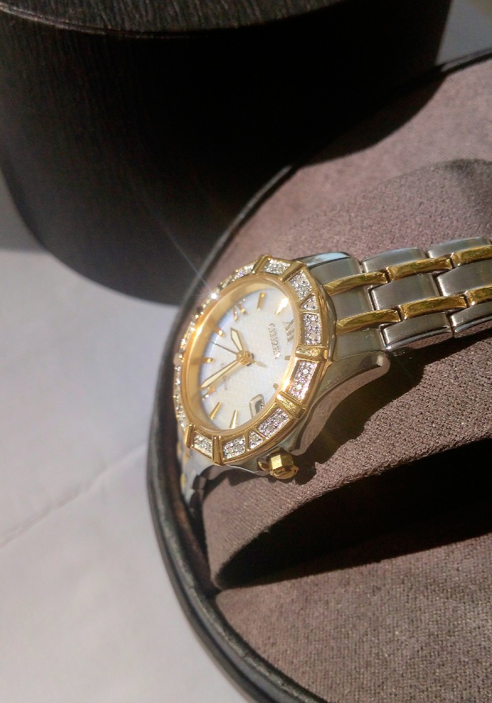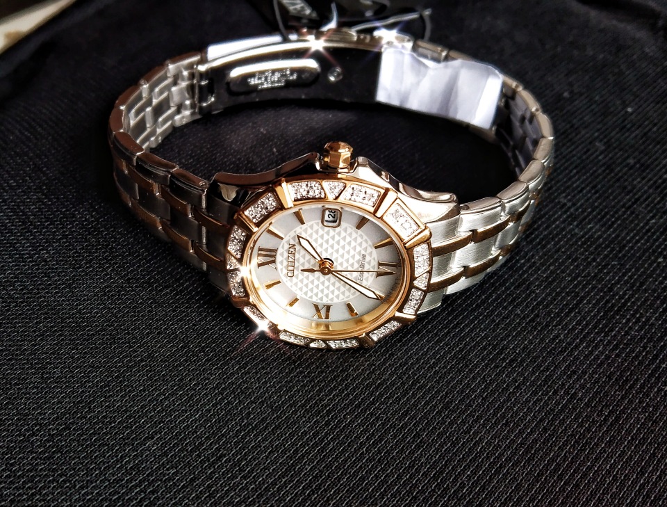 - Практичный японский кварцевый механизм с технологией Eco-Drive, позволяющей заряжаться батарейке часов от солнечного и искусственного света.