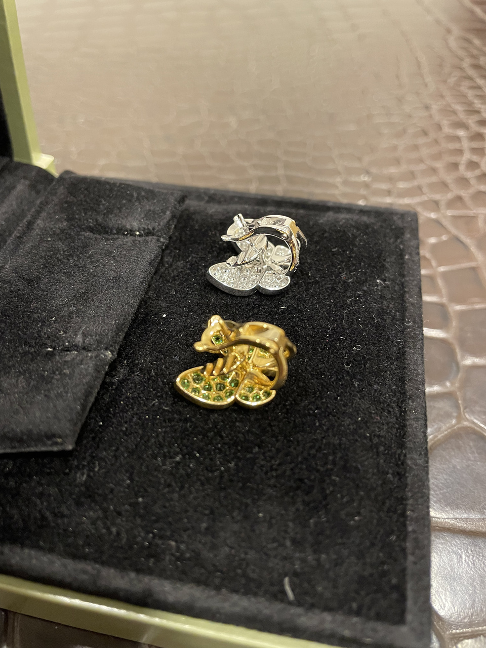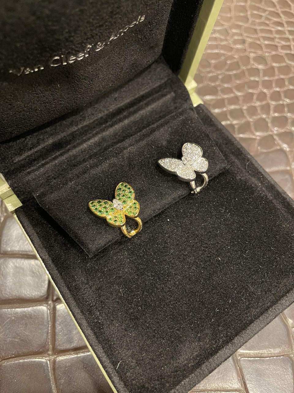 Дом Van Cleef & Arpels воздает должное одному из источников вдохновения: крылатам созданиям. В связи с этим модель из коллекции Fauna выполнена в форме двух бабочек- символа души и вечности. Одна бабочка выполнена из белого золота с инкрустацией 34-мя бриллиантами круглой огранки, другая-из жёлтого золота, украшена 34-мя цавориты, общим весом 2,47 карат. Тельца бабочек изготовлены из бриллиантов огранки «Маркиза». Общий вес бриллиантов составляет 0,99 карата.