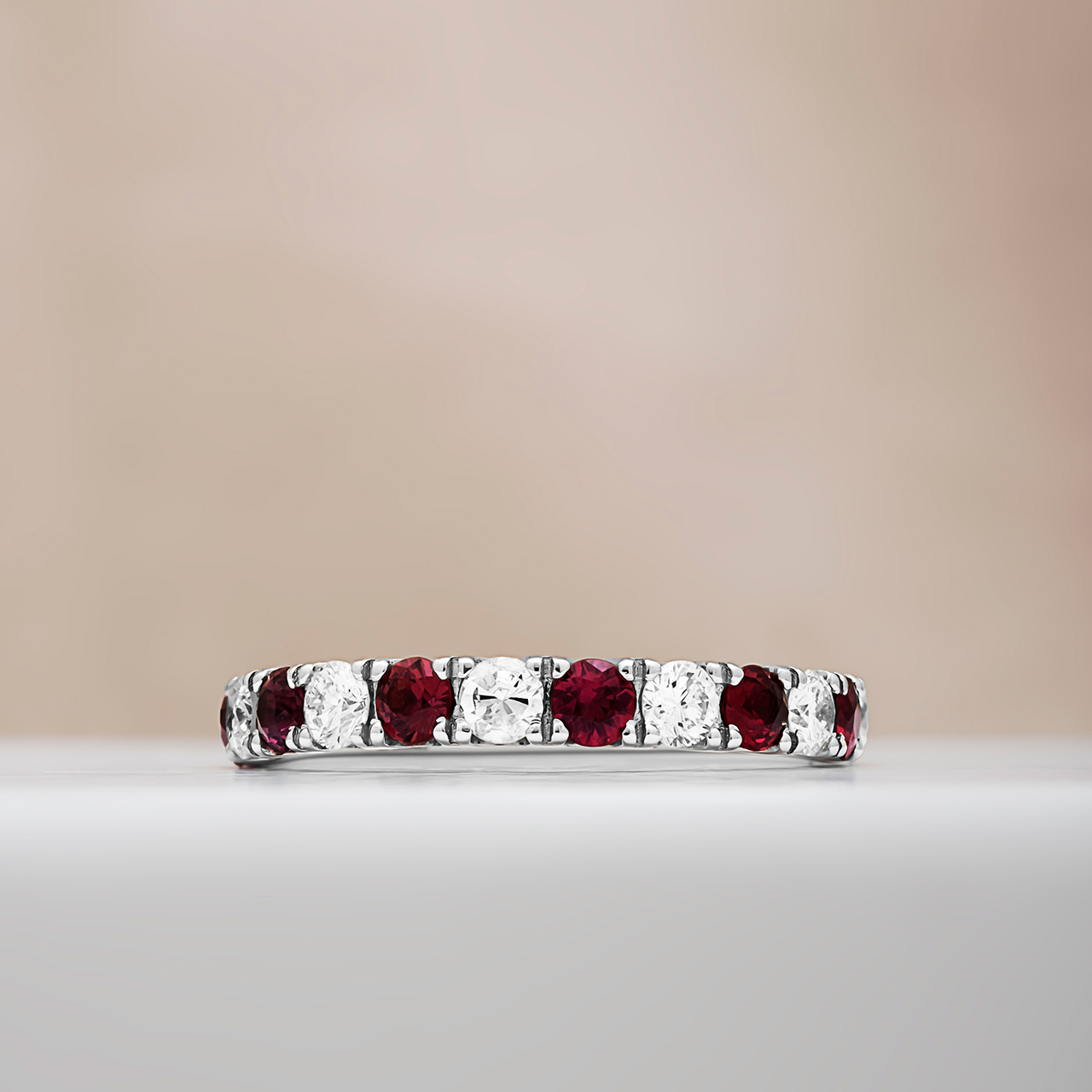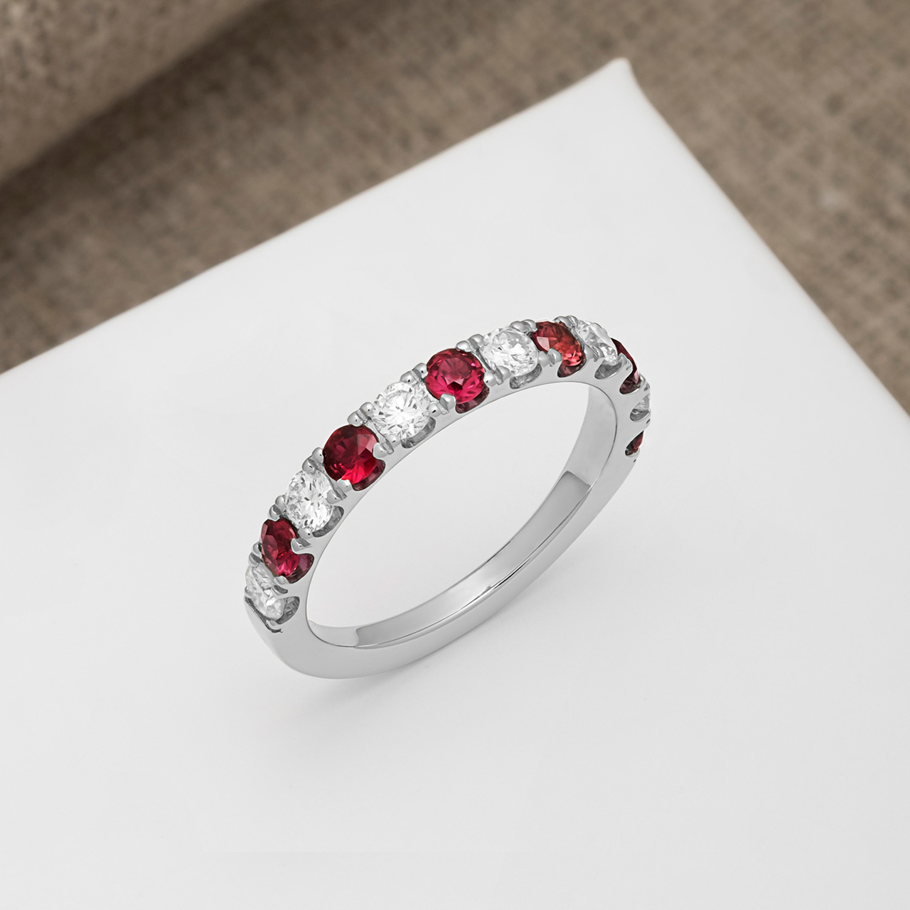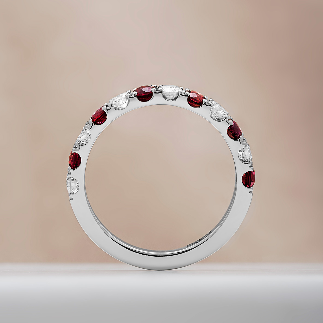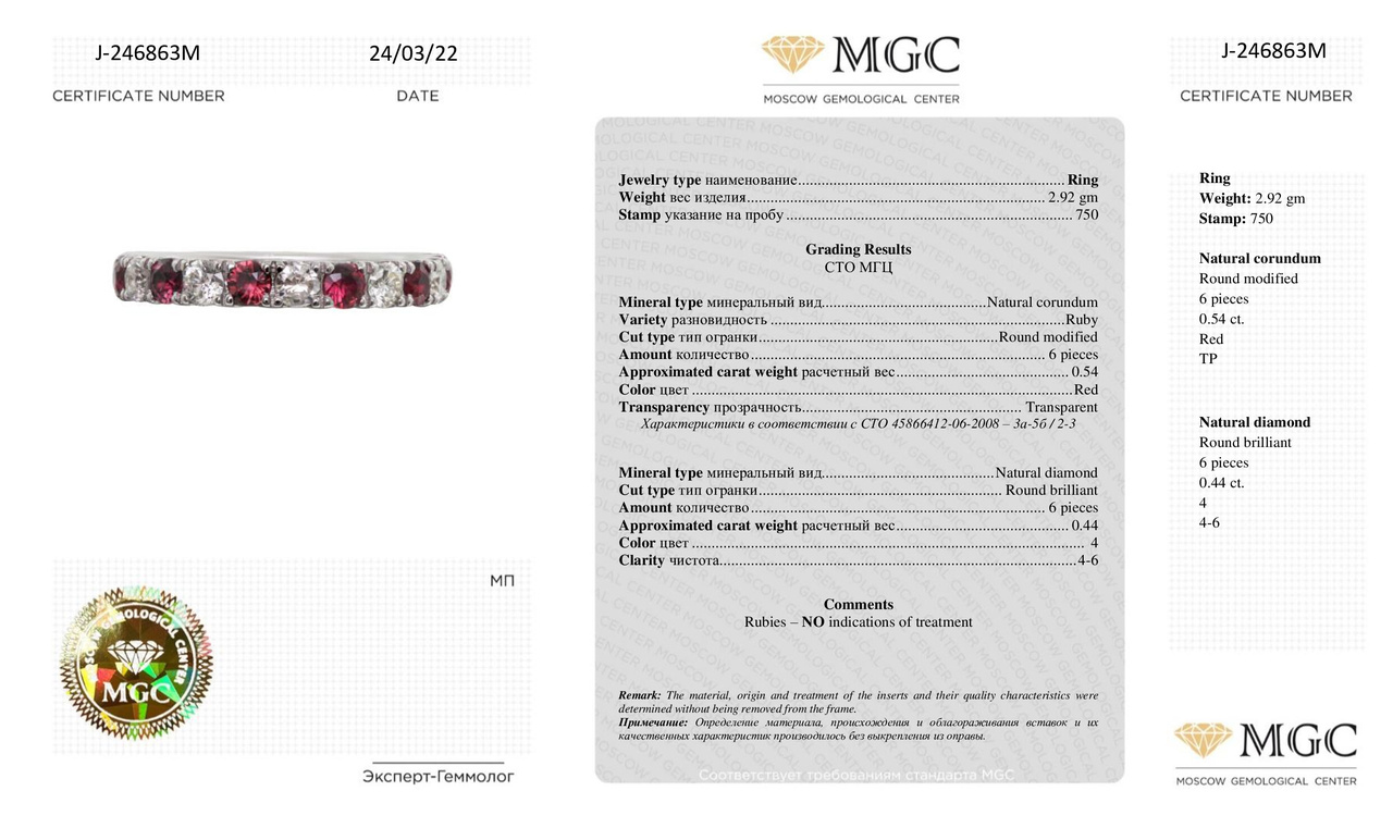 Кольцо из белого золота с рубинами 0,54 карат и бриллиантами 0,44 карат (сертификат МГЦ)
