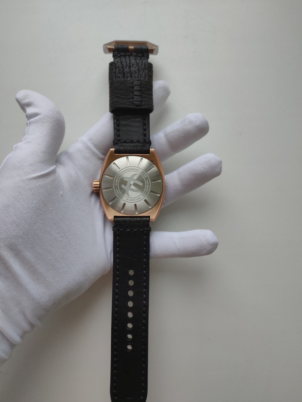 Часы в шикарном состоянии с минимальными следами носки и на уверенном ходу. Очень интересный шоколадно-коричневый цвет цифера с накладными метками, безупречно исполненными стрелками, отличной читаемостью и бомбовым люмом. Суровая сибирская погода с отсутствием солнца и, как следствие, бликами от искусственного освещения, к сожалению, не позволила до конца передать всю красоту данного экземпляра.