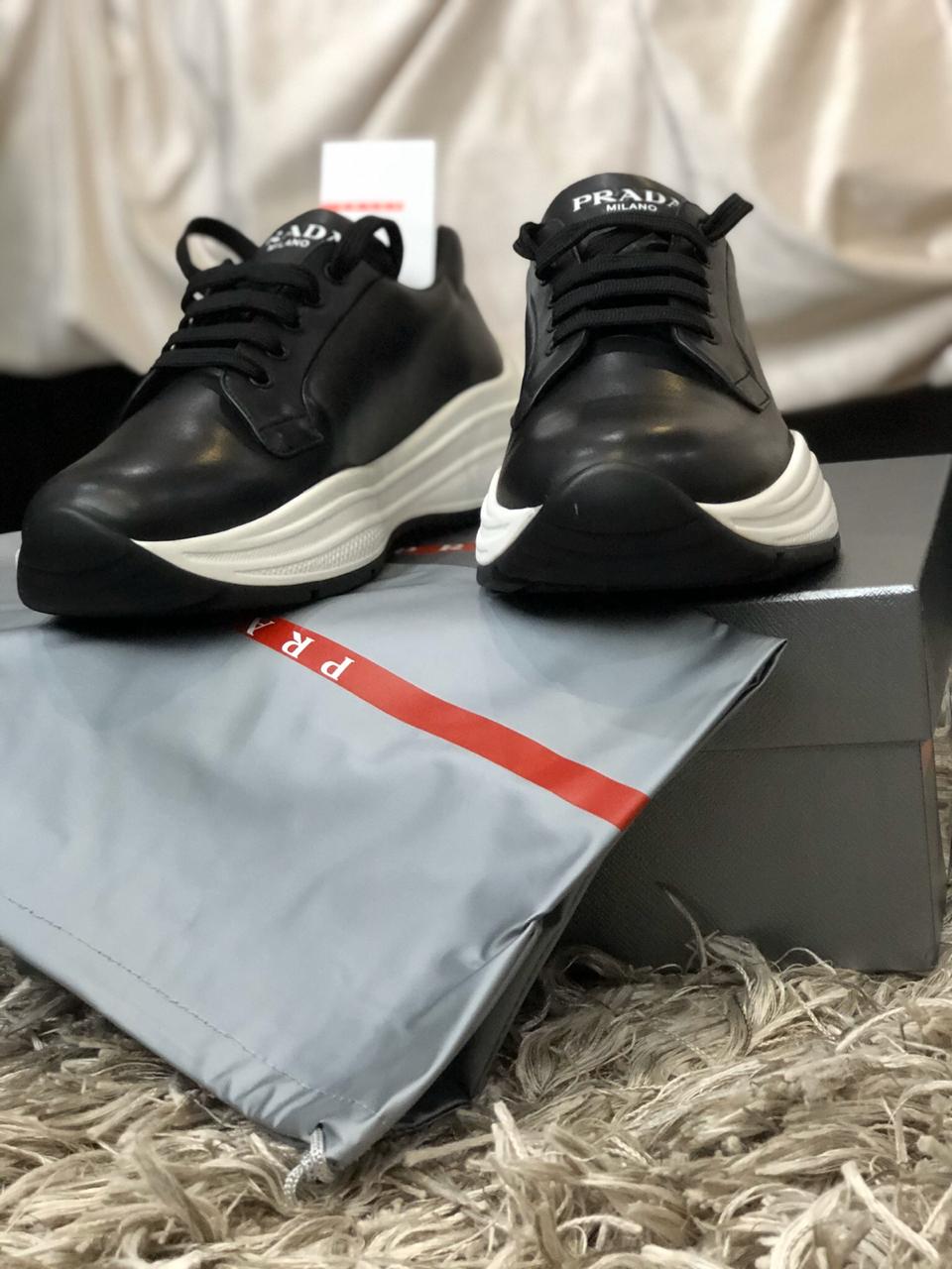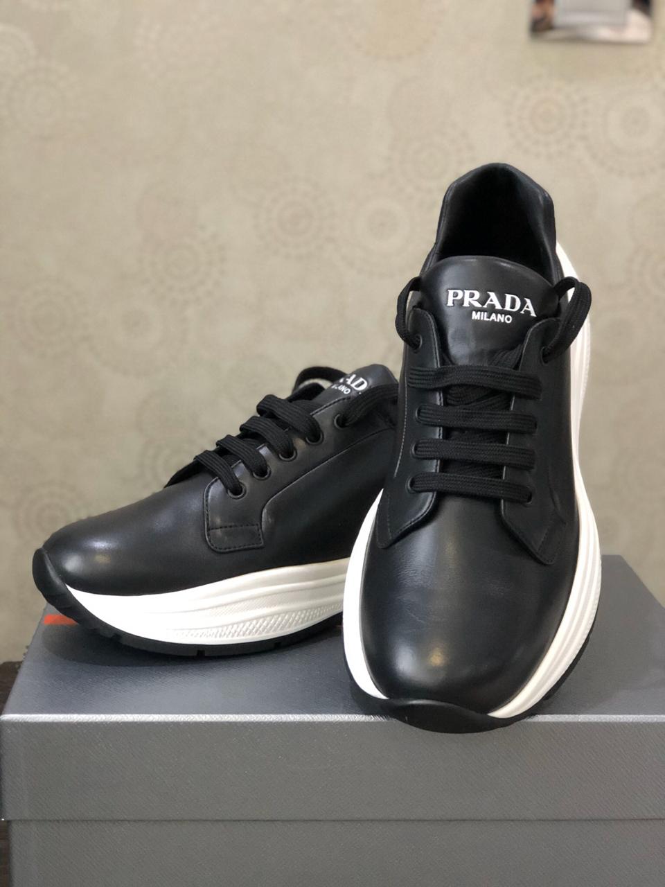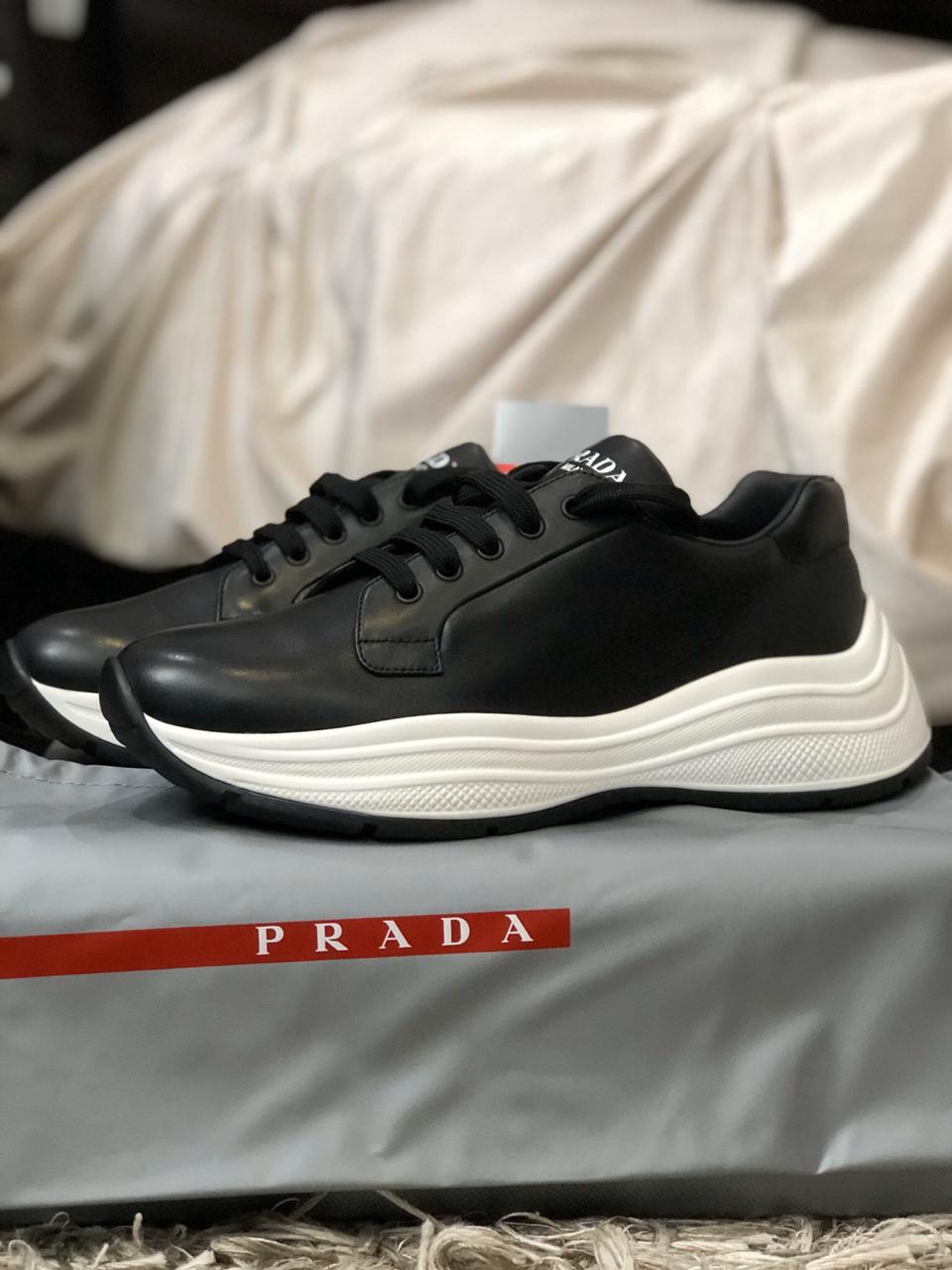 В продаже новые мужские кроссовки от известного итальянского дома моды PRADA.