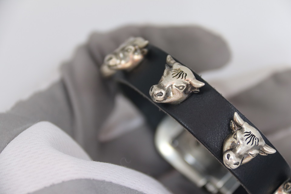 Застежка и головы быков выполнены из серебра 925 пробы.