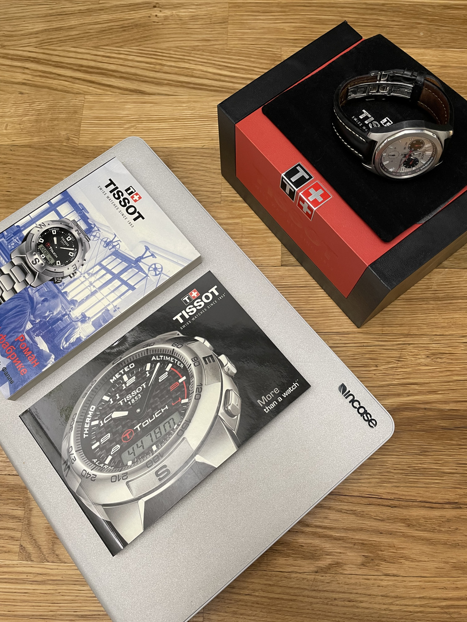 В комплекте оригинальная коробка, подушечка, бархатный конверт и роман о часовой фабрике от Эстель Фалле.