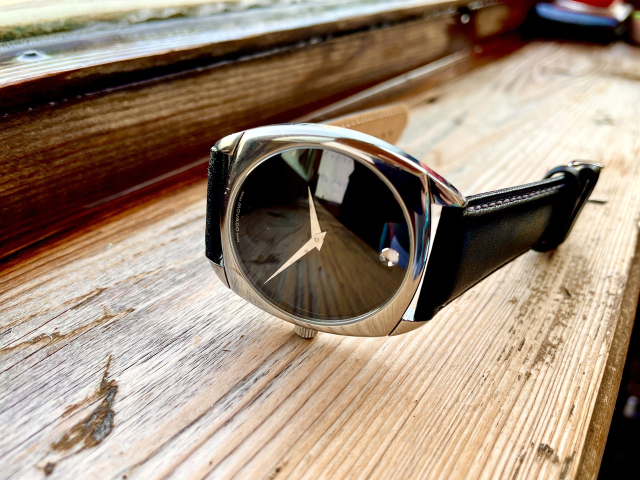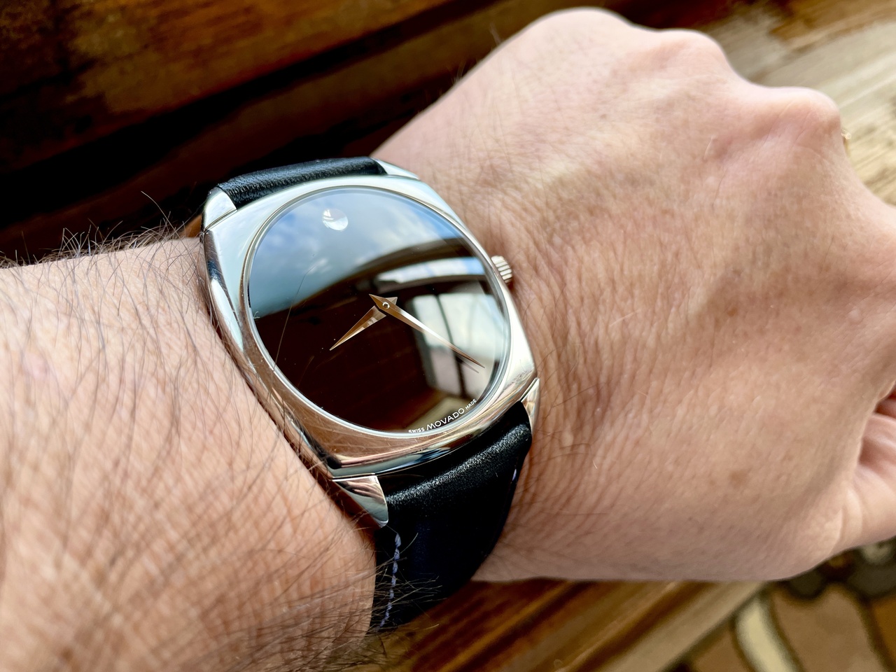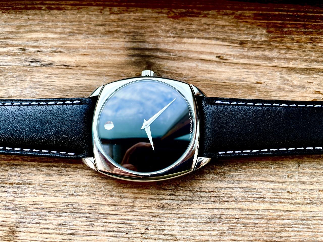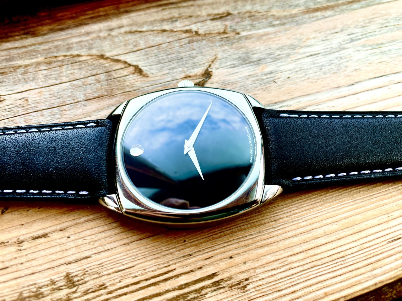Продам отличные,редкие сейчас MOVADO Museum Automatic.Отличный дизайн циферблата в глубоком черном цвете без всего,кроме одной отметке на ‘12’.У меня лично ассоциируются с ‘Черным квадратом’ Малевича,но у всех по-разному:то бесконечность космоса,или аналог Солнечной системы…Однозначно модель совершенно неординарная,в которую влюбляешься с первых дней использования.Сами часы в хорошем состоянии,есть небольшие потертости на полировке,ремешок заменен на совершенно новый Stailer.В комплекте только часы,коробки и макулатуры нет.Обмен не интересен,пересыл возможен ТОЛЬКО ПО ПРЕДОПЛАТЕ НА Сбер.