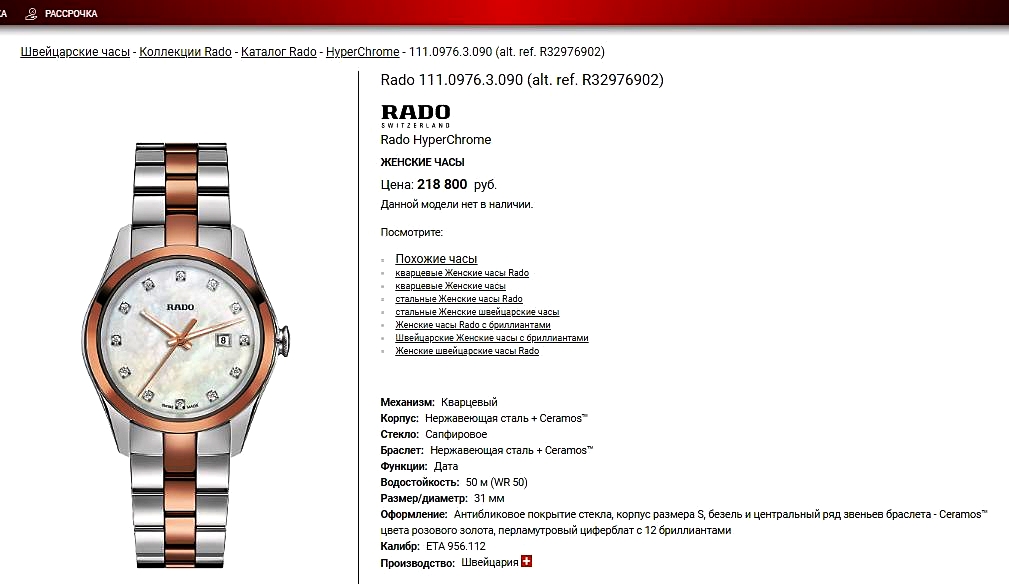 В продаже шикарные и элегантные женские часы RADO HYPERCROME DIAMOND.