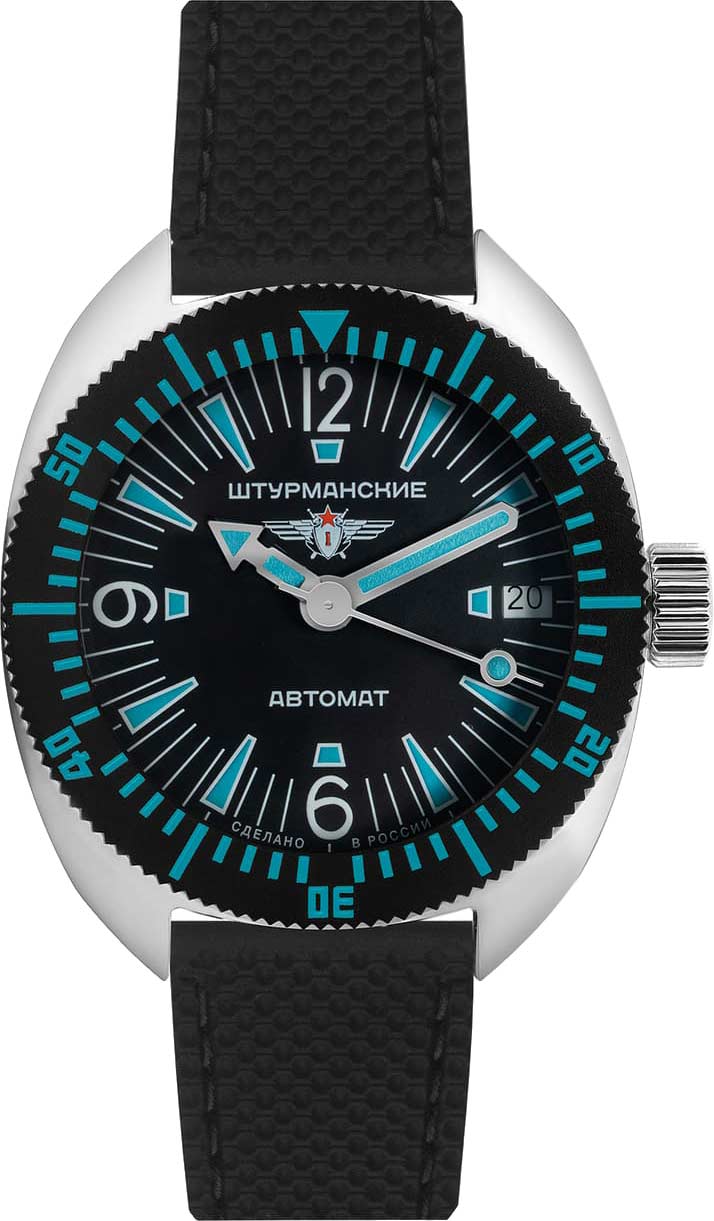 6. Стадия российских часов. Приглянулись Штурманские 2416-7771502. Лимитированная серия, это что-то новое в моих поисках. Да и каучуковый ремешок не смотрится простой резиной. Двунаправленный безель. Компактные размеры! Со временем начало казаться, что циферблат перегружен отметками и рисками... Да и энтузиазм на тему "ЭТО ЖЕ ОТЕЧЕСТВЕННЫЕ" поугас, кириллица на циферблате начала резать глаз.