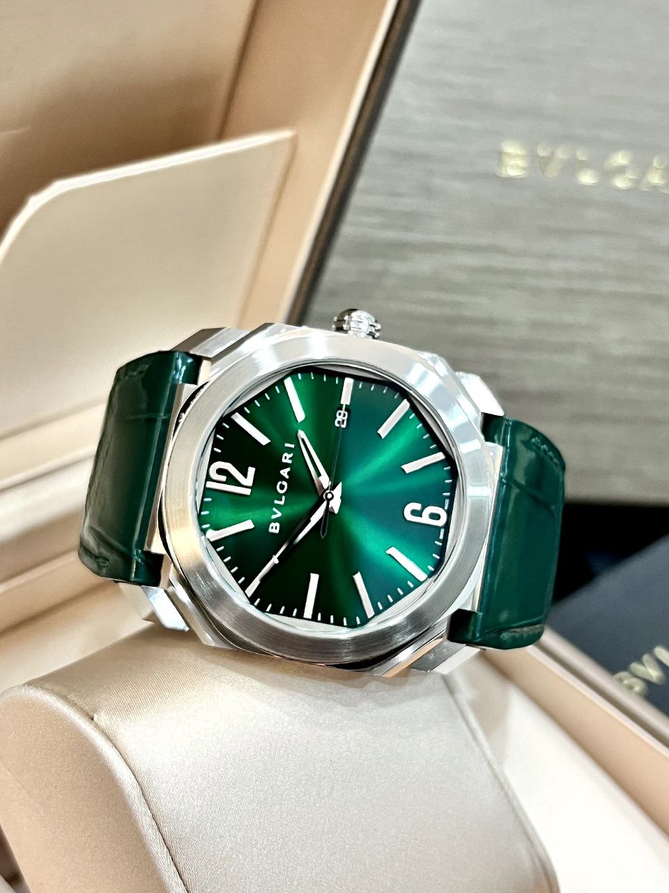 В продаже BVLGARI OCTO ROMA GREEN «HULK» с редким зеленым HULK циферблатом, которые крайне сложно найти в продаже