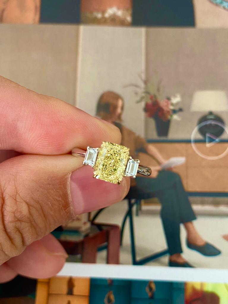 Кольцо с бриллиантом 2,19 карат Fancy Light Yellow (сертификат GIA)!